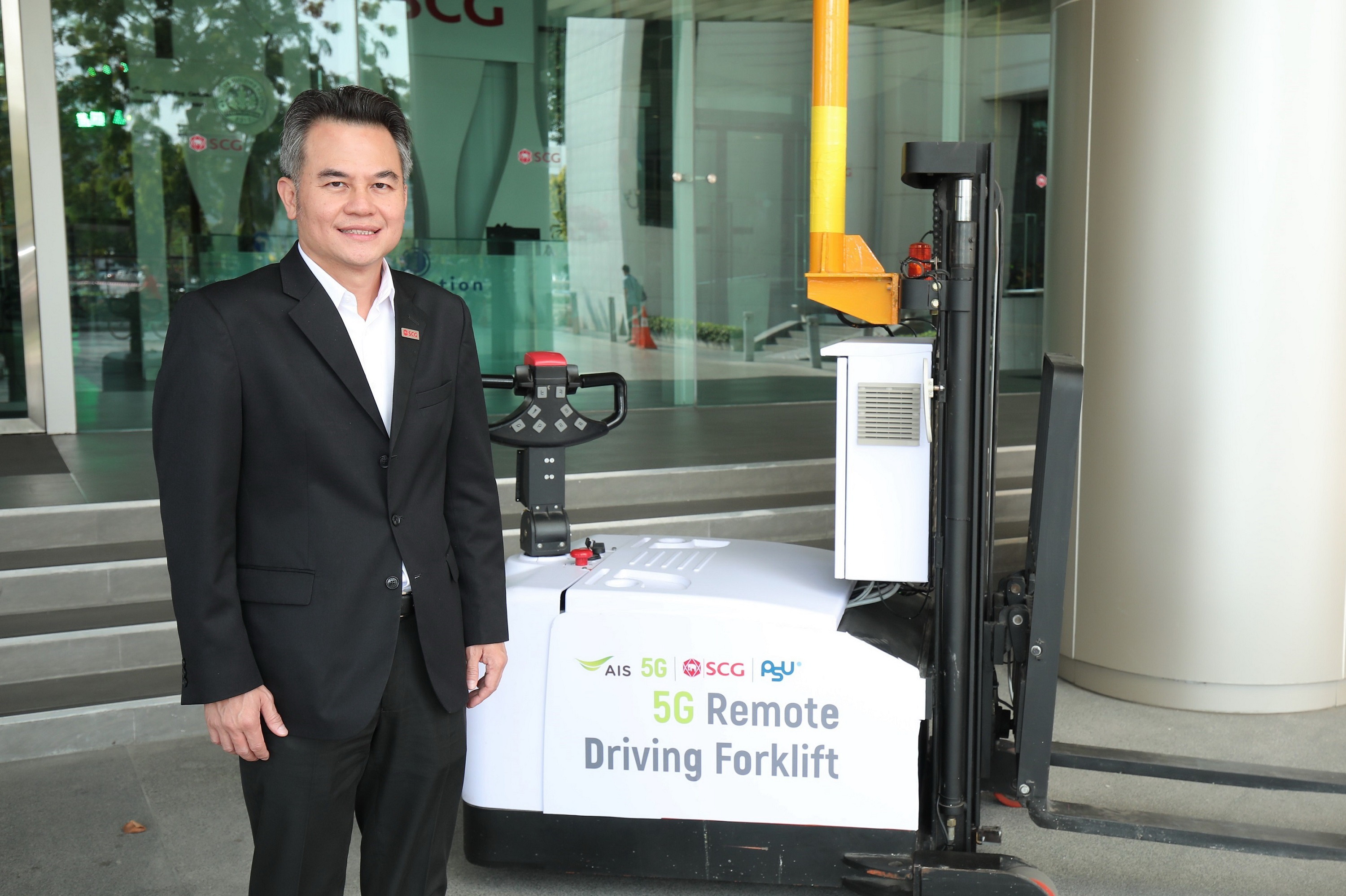 “ด้วยเหตุนี้ เราจึงร่วมกันค้นหาโครงการต้นแบบที่สามารถนำเทคโนโลยี 5G มาใช้ในภาคอุตสาหกรรมได้อย่างรวดเร็ว นั่นคือการพัฒนารถยก (Forklift) ต้นแบบ ที่สามารถควบคุมและขับเคลื่อนด้วยเครือข่าย 5G จากระยะไกล ซึ่งได้เริ่มดำเนินการเป็นแห่งแรกที่โรงงานของเอสซีจีใน จ.สระบุรี เนื่องจากรถ Forklift ถูกนำมาใช้เป็นจำนวนมากในโรงงานอุตสาหกรรม ทั้งขนาดเล็กและใหญ่ เพื่อขนย้ายวัสดุและสินค้าต่าง ๆ อยู่เป็นประจำ”