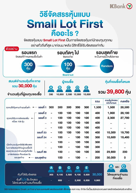 สำหรับการจัดสรรหุ้นดังกล่าว จะใช้วิธี Small Lot First เป็นการจัดสรรหุ้นให้แก่นักลงทุนทุกคนอย่างทั่วถึงที่สุด มาก่อนมาหลังมีสิทธิ์ได้รับจัดสรรเท่ากัน โดยชื่อผู้จอง ผู้ชำระเงิน และผู้รับหุ้นต้องเป็นคนเดียวกัน และประกาศผลการจัดสรรภายในวันที่ 6 กุมภาพันธ์ 2564