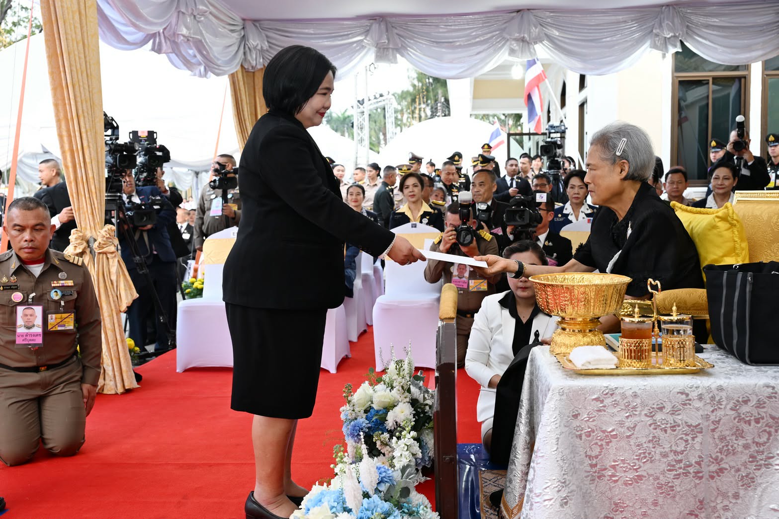 ในการนี้ นายอรรษิษฐ์ สัมพันธรัตน์ ปลัดกระทรวงมหาดไทย นำคณะผู้บริหารระดับสูงของกระทรวงมหาดไทย และ นางสาวสุวรา ทวิชศรี ผู้ว่าการการประปานครหลวง (กปน.) ร่วมเฝ้าฯ รับเสด็จ