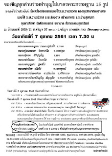 ขอเชิญทุกท่านร่วมทำบุญใส่บาตรพระกรรมฐาน 15 รูป ถวายสังฆทาน ทอดผ้าป่าสามัคคี วันอาทิตย์ที่ 7 ตุลาคม 2561 เวลา 7.30 น ณ ซอยจรัญสนิทวงศ์ 57 บางพลัด กทม (ใช้หอประชุม ร.ร.วัดรวก) ซื้อเครื่องมือแพทย์ มอบให้โรงพยาบาลต่างๆดังนี้ เครื่องติดตามการทำงานของหัวใจในผู้ป่วยหนัก 2 เครื่องๆละ 1 แสนบาท เตียงผู้ป่วย 30 เตียง มอบให้ตึกสงฆ์อาพาธโรงพยาบาลวานรนิวาส และโรงพยาบาลโนนสัง เครื่องควบคุมการไหลของสารน้ำทางหลอดเลือด 2 เครื่องๆละ 4.5 หมื่น บาท เครื่องวัดความดันโลหิต และอ็อกซิเจนในเลือด 2 เครื่องๆละ 4 หมื่นบาท มอบให้โรงพยาบาลโนนสัง จ.หนองบัวลำภู สร้างอาคารโรงเรียนบ้านสุมณฑา จ.อุดรธานี 2 ล้านบาท