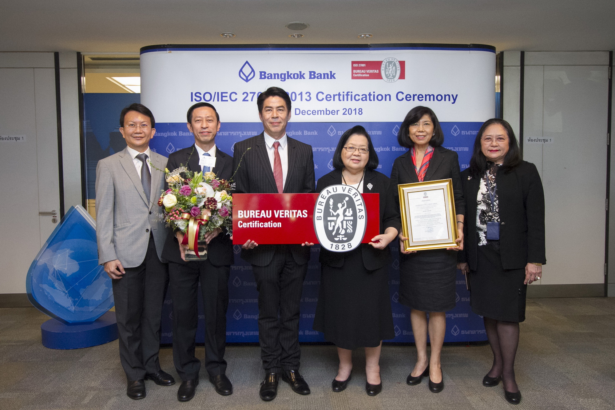 ธนาคารกรุงเทพ รับมอบใบรับรอง ISO/IEC 27001:2013 พัฒนาความปลอดภัยของบริการการเงินออนไลน์
