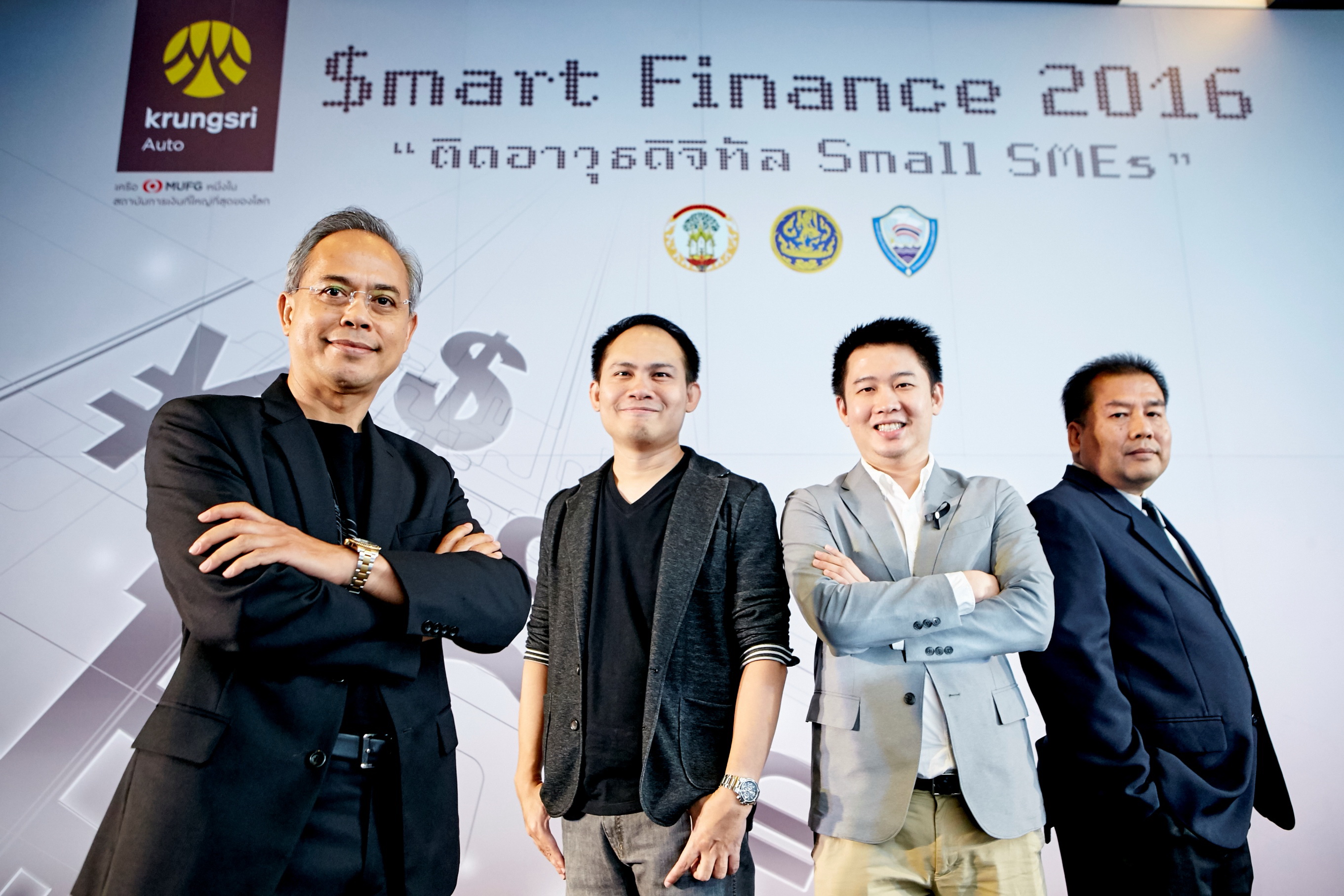 บรรยายภาพ (จากซ้ายไปขวา): ‘กรุงศรี ออโต้’ นำโดย คุณไพโรจน์ ชื่นครุฑ ประธานคณะเจ้าหน้าที่ด้านธุรกิจสินเชื่อยานยนต์ ธนาคารกรุงศรีอยุธยา จำกัด (มหาชน) จัดงานสัมมนา “$mart Finance 2016: ติดอาวุธดิจิทัล Small SMEs” โดยได้รับเกียรติจากคุณจักรพงษ์ เมษพันธุ์ ผู้เชี่ยวชาญด้านการวางแผนการเงินและวางแผนธุรกิจ คุณสืบศักดิ์ ลิ่วลักษณ์ ที่ปรึกษาด้านการตลาดออนไลน์ คุณพสิษฐ์ พรหมภักดี ผู้อำนวยการกลุ่มยุทธศาสตร์และแผนงาน สำนักงานพาณิชย์ จังหวัดพระนครศรีอยุธยา เป็นวิทยากรรับเชิญ