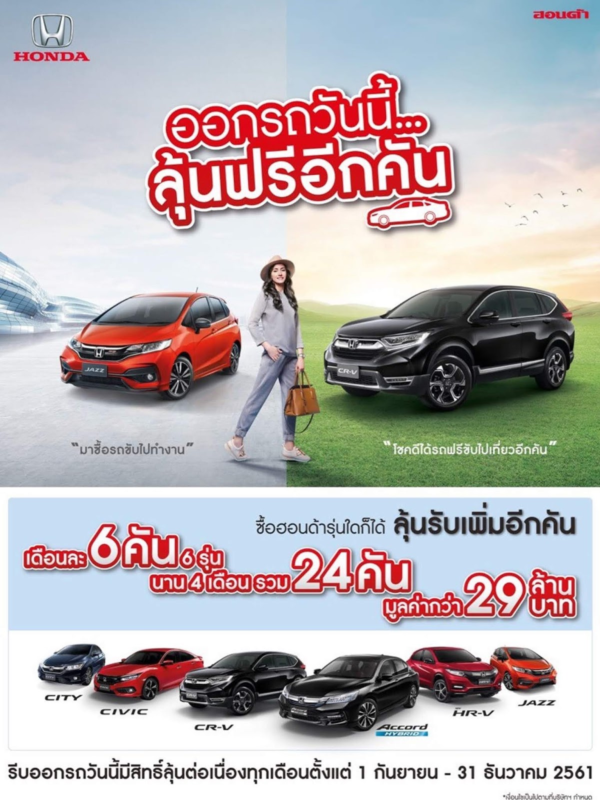 ฮอนด้ามอบสิทธิพิเศษให้แก่ลูกค้าที่ซื้อรถยนต์ฮอนด้ารุ่นใดก็ได้ ตั้งแต่วันที่ 1 กันยายน – 31 ธันวาคม 2561 และรับ
