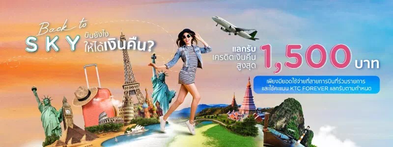 “เคทีซี” หรือ บริษัท บัตรกรุงไทย จำกัด (มหาชน) เล็งเห็นถึงความสำคัญในเรื่องการเดินทางท่องเที่ยว หลังจากที่หลายประเทศเริ่มปลดล็อกมาตรการในการเดินทางเข้าประเทศได้อย่างไม่มีข้อจำกัด โดยในช่วงที่ประเทศไทยเปิดประเทศในเดือนพฤษภาคม - ตุลาคม 2565 สมาชิกบัตรเครดิตเคทีซีที่ใช้จ่ายในการจองตั๋วเครื่องบินเพิ่มขึ้นถึง 694% และเพื่อมอบสิทธิประโยชน์สำหรับการเดินทางท่องเที่ยวในช่วงปลายปี เคทีซีจึงได้จัดโปรโมชัน “KTC Back to Sky” บินสายไหนก็คุ้มส่งท้ายปีกับ 14 สายการบินชั้นนำที่ร่วมรายการ เพียงมียอดใช้จ่ายผ่านบัตรเครดิตเคทีซีที่เว็บไซต์ของสายการบินและใช้คะแนน KTC FOREVER ตามที่กำหนด แลกรับเครดิตเงินคืนสูงสุด 1,500 บาท ตั้งแต่วันนี้ -31 ธันวาคม 2565 ดังนี้