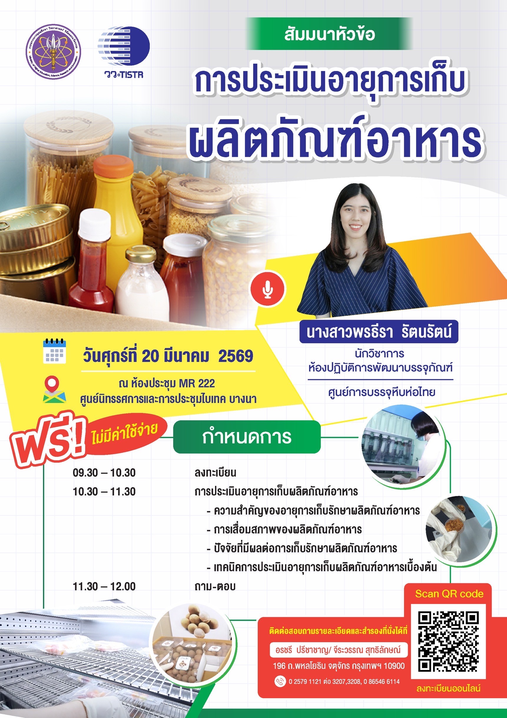 วว. โดย ศูนย์การบรรจุหีบห่อไทย จัดสัมมนาฟรี !!! การประเมินอายุการเก็บผลิตภัณฑ์อาหาร