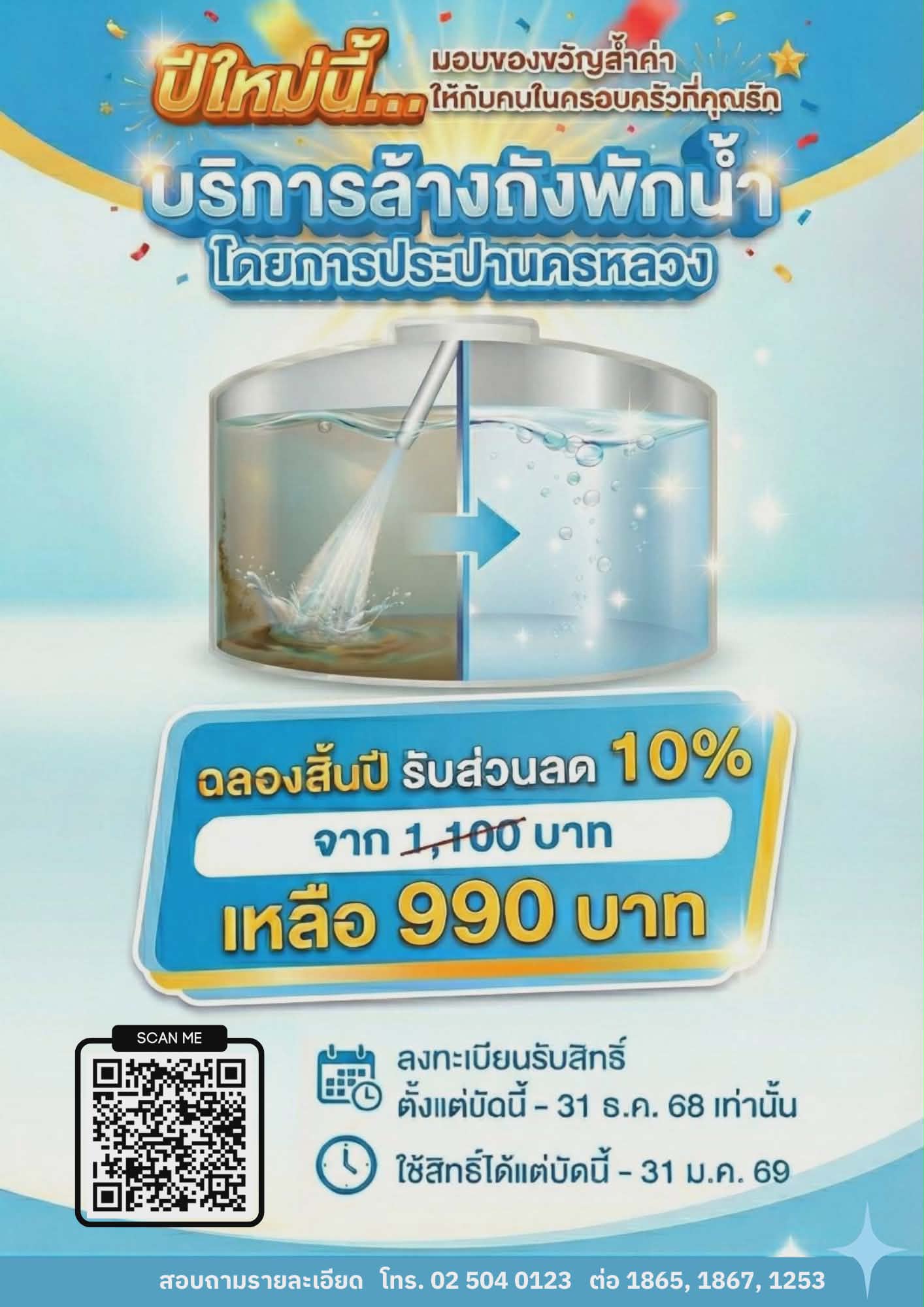 กปน. ส่งต่อความสุขต้อนรับปีใหม่ มอบโปรโมชัน Flash Sale ลดค่าล้างถังน้ำในราคาพิเศษ 990 บาท