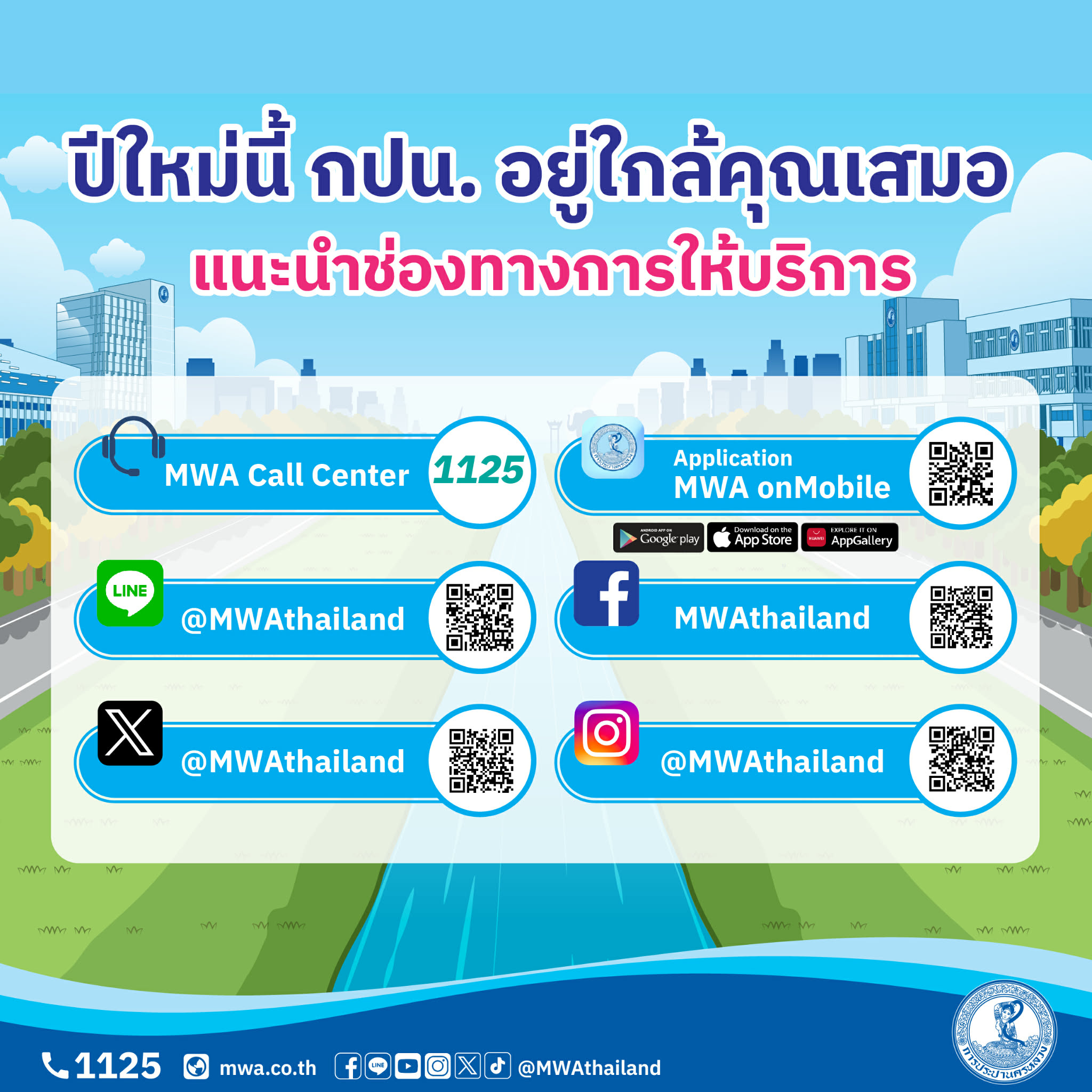 ปีใหม่นี้ กปน. อยู่ใกล้คุณเสมอ สะดวก รวดเร็ว ติดต่อได้หลายช่องทาง