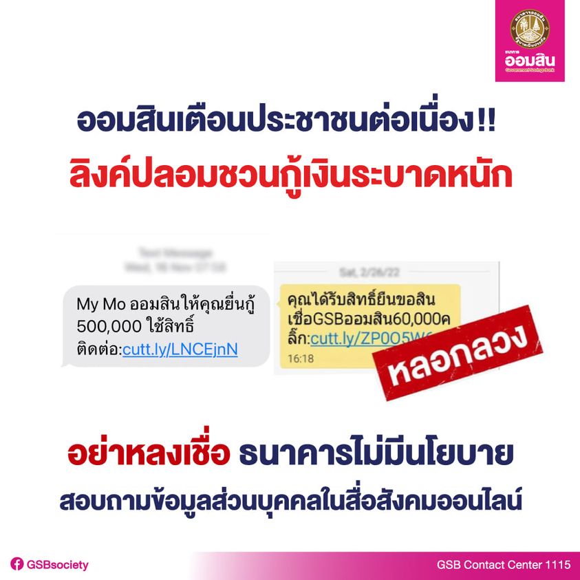 ออมสินเตือนประชาชนต่อเนื่อง หลังมิจฉาชีพหลอกให้กดลิงก์ชวนกู้เงินระบาดหนัก