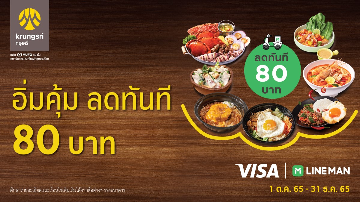 กรุงศรี ชวนอิ่มคุ้ม ลดทันที 80 บาท เมื่อสั่งอาหารที่ LINE MAN