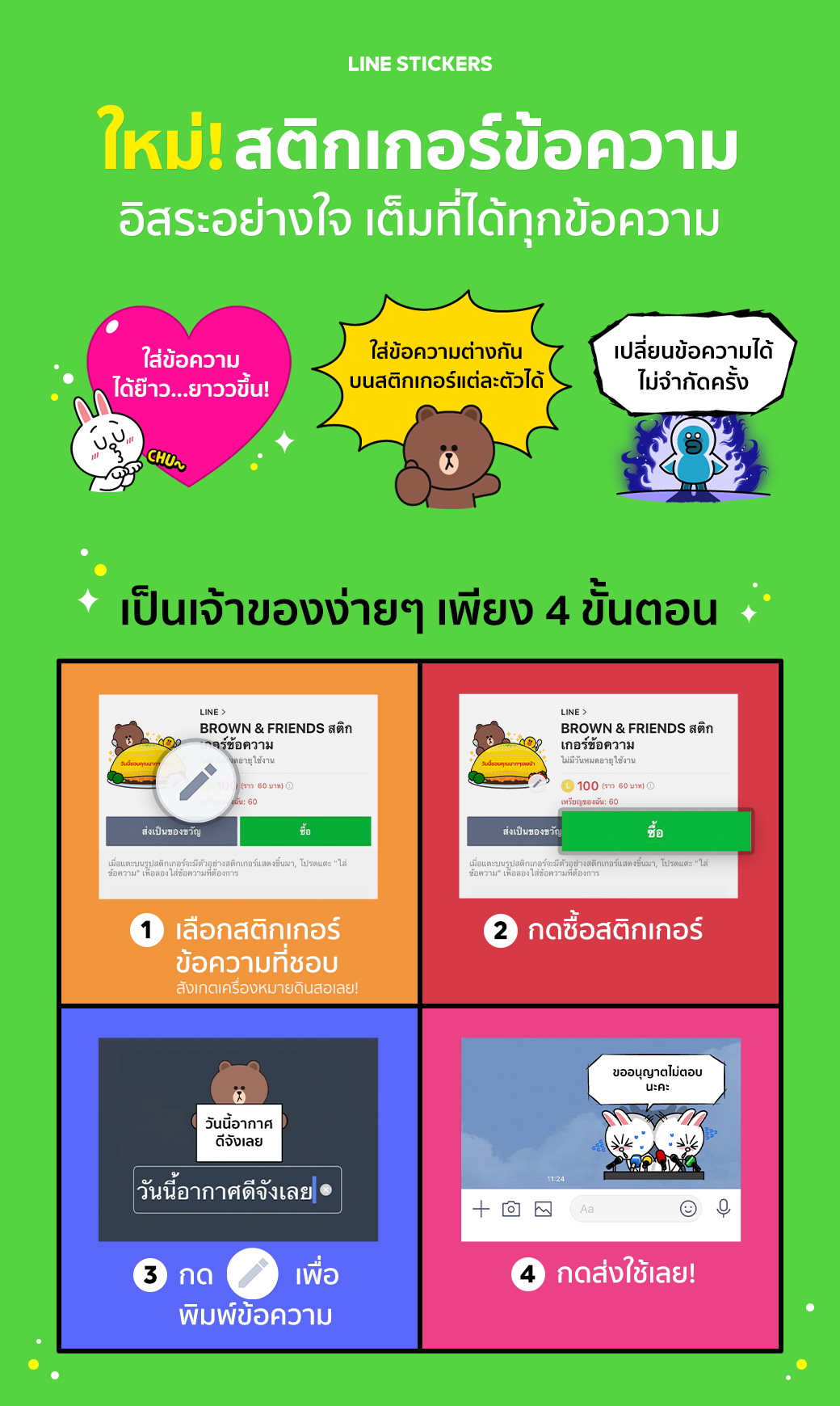 สติกเกอร์ข้อความ ใหม่ล่าสุดจาก LINE STICKERS ... ไม่มีไม่ได้แล้ว! ให้เติมคำได้อิสระอย่างใจ เต็มที่ได้กับทุกข้อความ