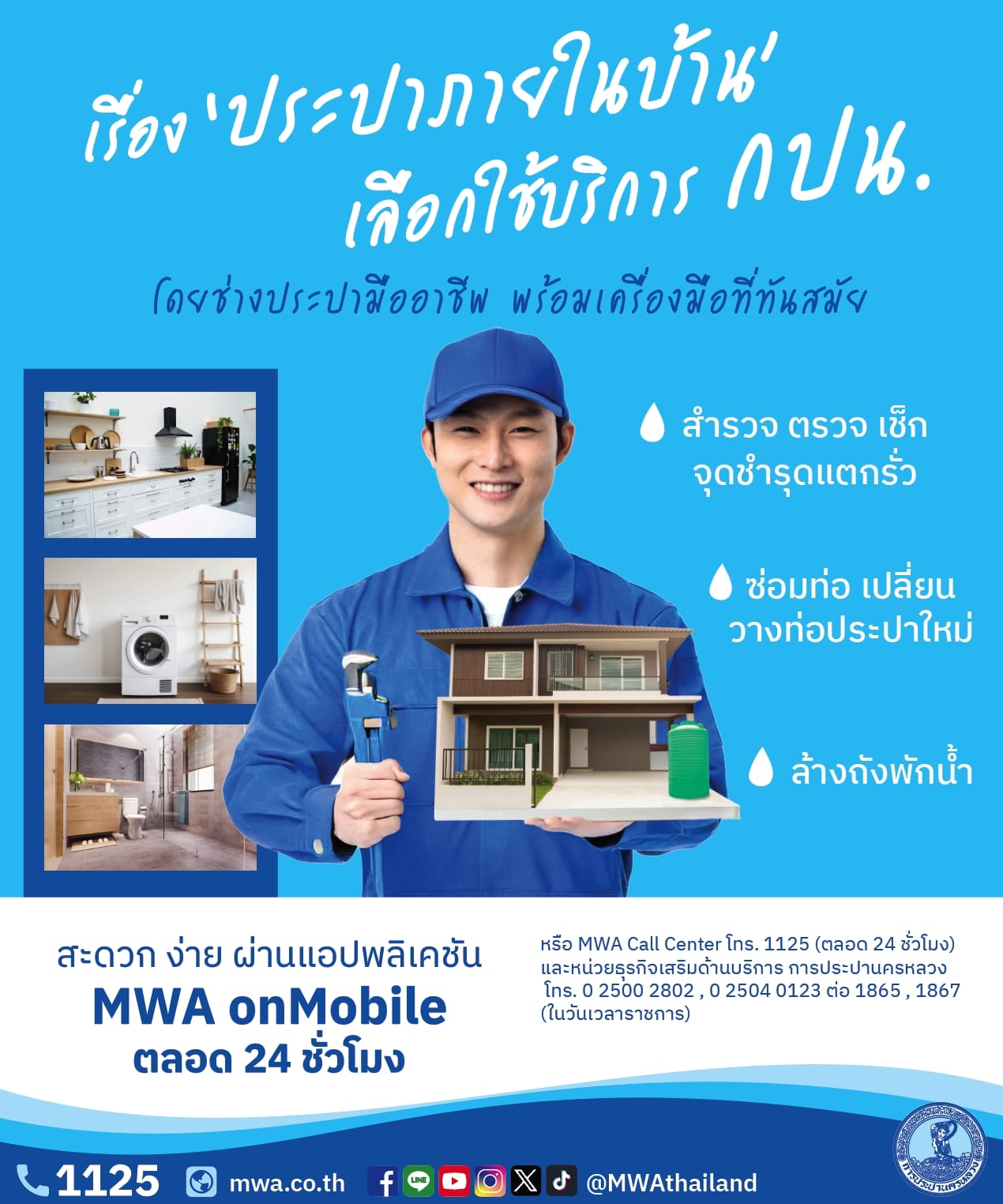 "ประปาภายในบ้าน เลือกใช้บริการ ของการประปานครหลวง (กปน.)" โดยช่างประปามืออาชีพ พร้อมเครื่องมือที่ทันสมัย