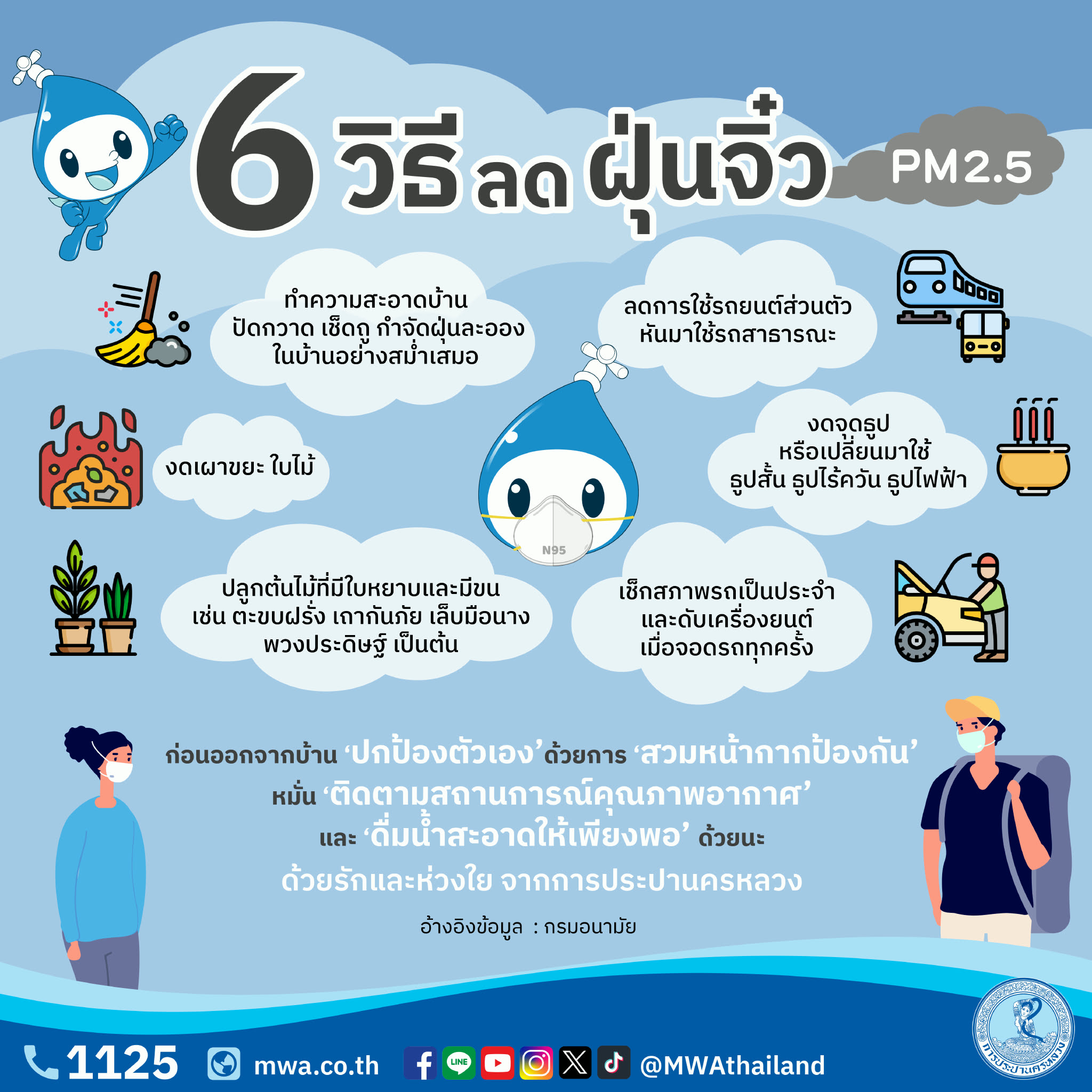 การประปานครหลวง ชี้ ฝุ่นจิ๋ว PM 2.5 อันตรายกว่าที่คิด มาช่วยกันลดฝุ่นเพื่ออากาศที่ดีขึ้นกันเถอะ