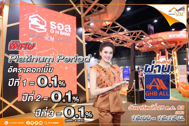 จากนั้นจะสามารถจองสิทธิ์สินเชื่อช่วง Platinum Period ได้ผ่าน Application : GHB ALL ในวันอาทิตย์ที่ 25 ตุลาคม 2563 ตั้งแต่เวลา 15.00 – 15.15 น. จองก่อนได้ก่อน (ธนาคารขอสงวนสิทธิ์ในการปิดจองก่อนเวลา 15.15 น. เมื่อมีการจองเต็มกรอบวงเงินรวม 650 ล้านบาท และห้ามกู้เกินวงเงินที่จองสิทธิ์)