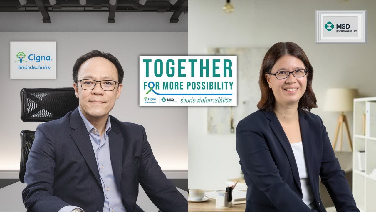 กรุงเทพฯ – บริษัท ซิกน่า ประกันภัย จำกัด (มหาชน) ร่วมกับ บริษัท เอ็มเอสดี (ประเทศไทย) จำกัด จับมือเป็นพันธมิตร ภายใต้แคมเปญ “Together4More Possibility - ร่วมก่อ ต่อโอกาสให้ชีวิต” เพื่อนำเสนอข้อมูลความรู้เกี่ยวกับโรคมะเร็งและนวัตกรรมด้านการรักษา ซึ่งรวมถึงการรักษาโรคมะเร็งด้วยภูมิคุ้มกันบำบัด ที่ช่วยรักษาชีวิตและช่วยเพิ่มคุณภาพชีวิตของผู้ป่วยในระหว่างการรักษาให้ดียิ่งขึ้น การร่วมเป็นพันธมิตรในครั้งนี้ มุ่งหวังให้คนไทยมีความรู้ความเข้าใจถึงทางเลือกในการรักษาและมีโอกาสในการเข้าถึงการรักษาโรคมะเร็งที่ให้ผลลัพธ์ที่ดียิ่งกว่า เพื่อร่วมกันสรรสร้างความหวังที่มากกว่าวันพรุ่งนี้