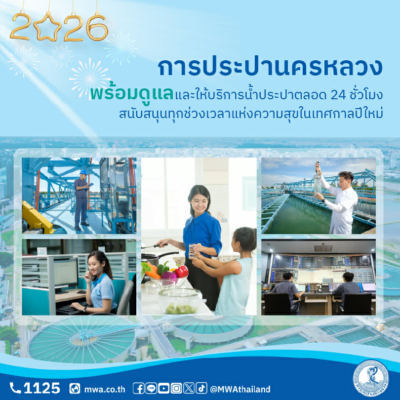 ช่วงเทศกาลปีใหม่ 2569 การประปานครหลวง (กปน.) พร้อมดูแลน้ำประปาให้คุณตลอด 24 ชั่วโมง