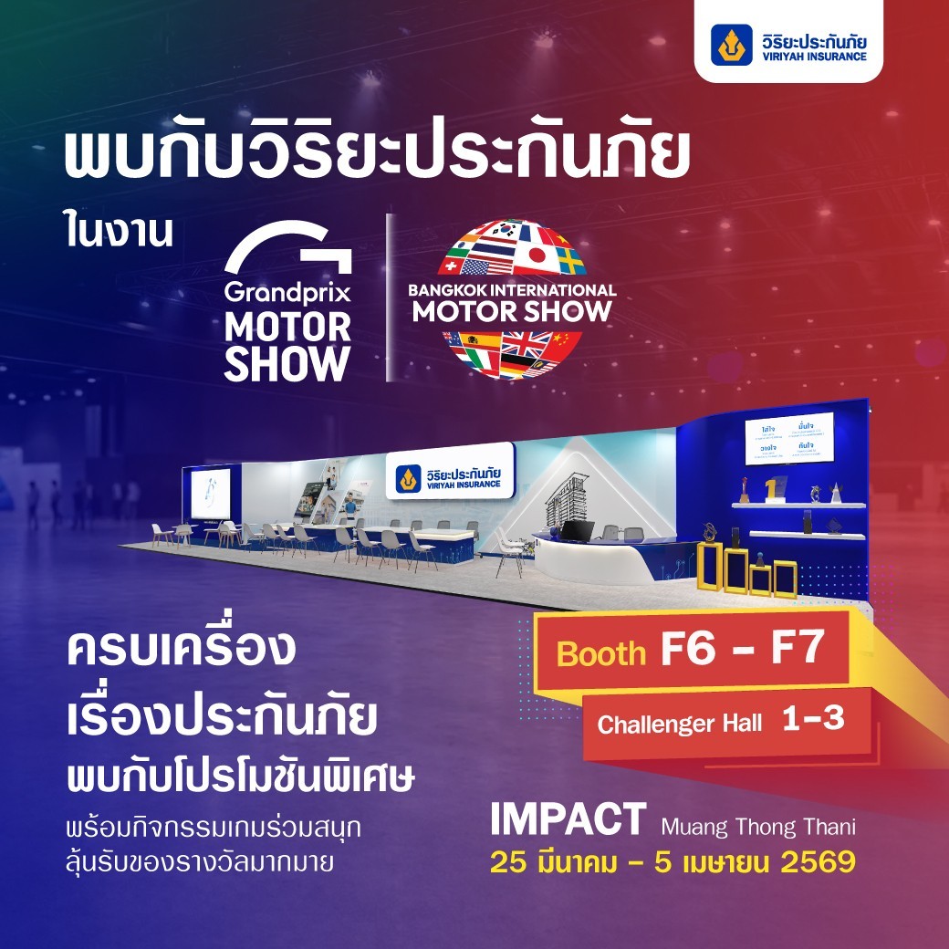 บริษัท วิริยะประกันภัย จำกัด (มหาชน) ยกทัพผลิตภัณฑ์และบริการด้านประกันภัยเข้าร่วมงาน “Bangkok International Motor Show ครั้งที่ 47” เพื่อนำเสนอความคุ้มครองที่ตอบโจทย์ไลฟ์สไตล์ของผู้ใช้รถยนต์และผู้บริโภคยุคใหม่ พร้อมเติมความอุ่นใจในทุกเส้นทางและการใช้ชีวิตประจำวัน ณ บูธ F6 - F7 อาคารชาเลนเจอร์ 1 – 3 ศูนย์แสดงสินค้าและการประชุม อิมแพ็ค เมืองทองธานี ระหว่างวันที่ 25 มีนาคม – 5 เมษายน 2569