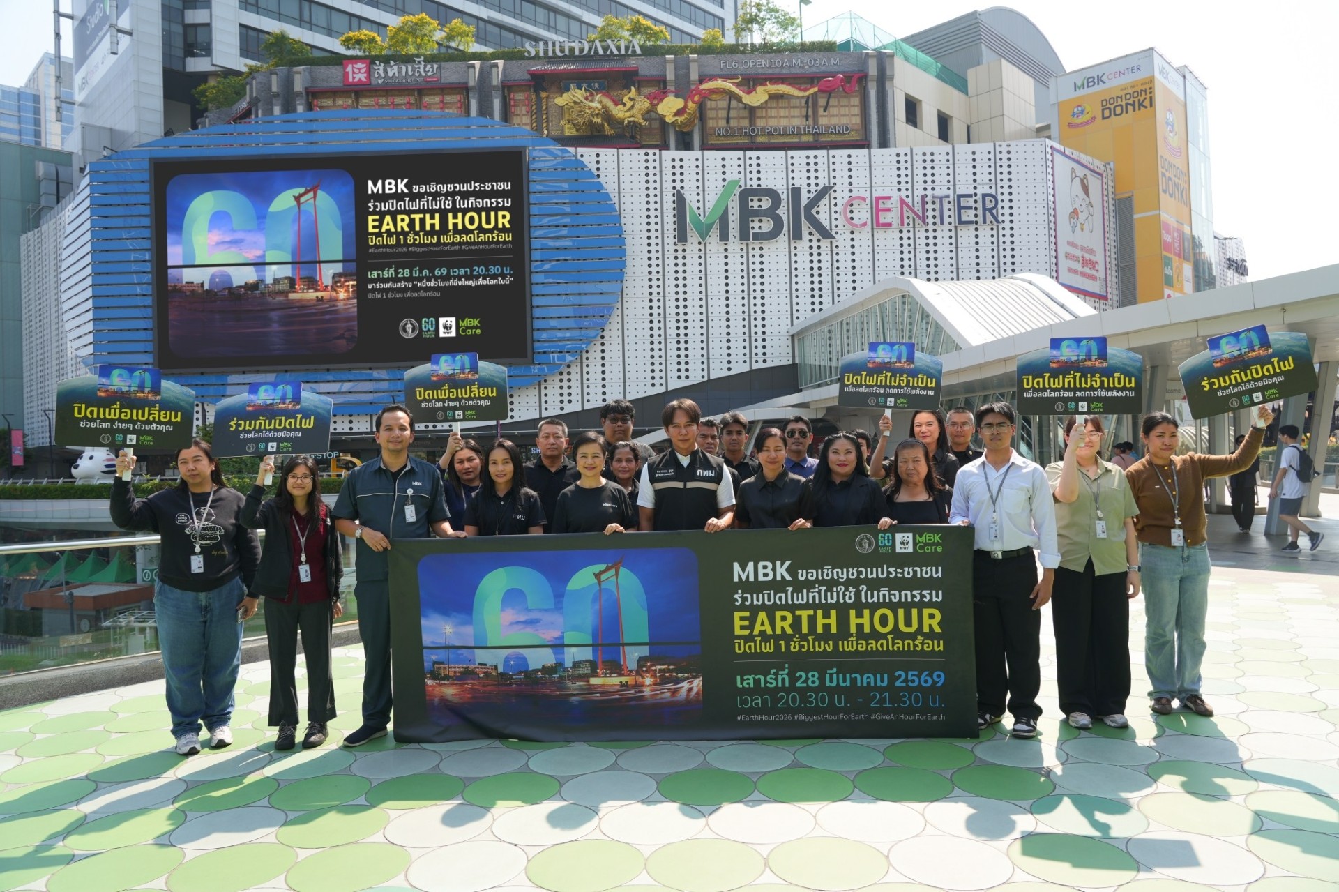 ศูนย์การค้าเอ็ม บี เค เซ็นเตอร์ ร่วมเป็นหนึ่งในแลนด์มาร์กสำคัญของกรุงเทพฯ ในการแสดงพลังปิดไฟลดโลกร้อนพร้อมเมืองใหญ่ทั่วโลก โดยผนึกกำลัง กรุงเทพมหานคร โดยสำนักงานเขตปทุมวัน ร่วมกับ องค์การกองทุนสัตว์ป่าโลกสากล (World Wide Fund for Nature : WWF) สนับสนุนกิจกรรม “ปิดไฟ 1 ชั่วโมง เพื่อลดโลกร้อน (60+ Earth Hour 2026) ซึ่งจะจัดขึ้นพร้อมกันทั่วโลก ในวันเสาร์ที่ 28 มีนาคม 2569 เวลา 20.30 น. – 21.30 น. โดยมี นางสาวศตกมล วรกุล ผู้อำนวยการอาวุโสฝ่ายสื่อสารองค์กร บริษัท อินเทลลิเจ้นท์ ครีเอทีฟ แอนด์ มาร์เก็ตติ้ง จำกัด ร่วมกับ สำนักงานเขตปทุมวัน โดย ดร.นรเทพ ชูพูล ผู้อำนวยการเขตปทุมวัน และคณะ จัดกิจกรรมเดินรณรงค์เชิญชวนผู้ประกอบการร้านค้า พนักงาน และลูกค้าที่มาใช้บริการภายในศูนย์การค้าฯ ร่วมเป็นส่วนหนึ่งของกิจกรรมลดการใช้พลังงานในชีวิตประจำวันด้วยการ ปิดไฟ 1 ชั่วโมง (60+ Earth Hour 2026) ณ ศูนย์การค้าเอ็ม บี เค เซ็นเตอร์ เมื่อเร็ว ๆ นี้