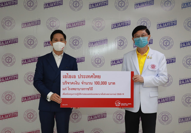 นายกฤษณ์ จันทโนทก ประธานเจ้าหน้าที่ฝ่ายตัวแทนประกันชีวิต เอไอเอ ประเทศไทย เป็นตัวแทนมอบเงินบริจาคให้แก่โรงพยาบาลรามาธิบดี โรงพยาบาลราชวิถี และสถาบันมะเร็งแห่งชาติ โรงพยาบาลละ 100,000 บาท รวมเป็นเงินบริจาคทั้งสิ้น 300,000 บาท เพื่อสนับสนุนการปฏิบัติงานของสถานพยาบาลในการให้ความช่วยเหลือและรักษาพยาบาลประชาชนคนไทยในช่วงสถานการณ์การแพร่ระบาดของโรคโควิด-19 ครั้งนี้ ซึ่งเงินบริจาคดังกล่าวมาจากการร่วมแรงร่วมใจของตัวแทนประกันชีวิตเอไอเอ โดยร่วมบริจาคเงินจำนวน 100 บาทต่อกรมธรรม์ จากผลงานนำส่งกรมธรรม์ประกันชีวิตที่แนบสัญญาเพิ่มเติมกลุ่มโรคร้ายแรง (CI Rider) ในช่วง 100 วันสุดท้ายของปี 2562