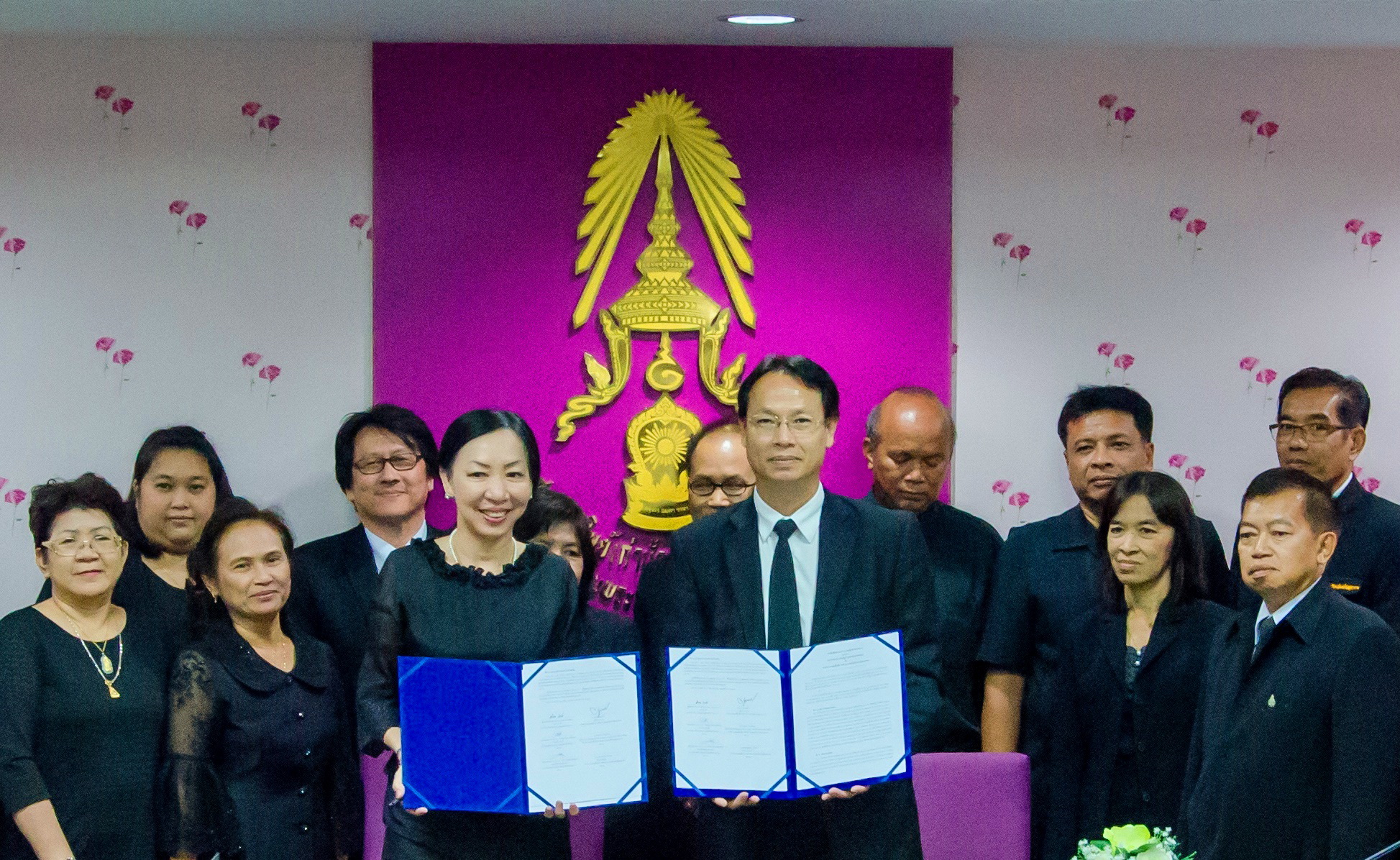 มหาวิทยาลัยราชภัฏบ้านสมเด็จเจ้าพระยา โดย ผศ.ดร.ลินดา เกณฑ์มา อธิการบดีมหาวิทยาลัย ราชภัฏบ้านสมเด็จเจ้าพระยา คณะผู้บริหาร และ ผศ.ดร.วิเชียร อินทรสมพันธ์ คณบดีคณะครุศาสตร์ เข้าร่วมพิธีลงนามความร่วมมือทางวิชาการ (MOU) "โครงการพัฒนาศักยภาพครูและบุคลากรทางการศึกษาเพื่อยกระดับคุณภาพการศึกษาไทยในโรงเรียนขนาดเล็ก" ระหว่าง มหาวิทยาลัยราชภัฏบ้านสมเด็จเจ้าพระยา กับสำนักงานเขตพื้นที่การศึกษาการประถมศึกษาสมุทรสาคร และโรงเรียนขนาดเล็กในจังหวัดสมุทรสาคร ณ ห้องประชุมสมาคมศิษย์เก่า ชั้น 6 อาคาร 11