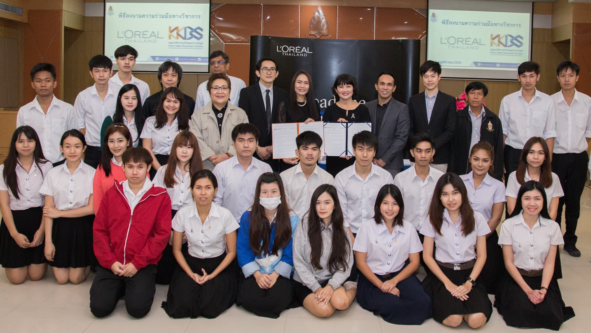 ขอนแก่น, 29 พฤศจิกายน 2559 - ลอรีอัล ประเทศไทย ร่วมกับคณะบริหารธุรกิจและการบัญชี มหาวิทยาลัยขอนแก่น (Khon Kaen Business School :KKBS) ลงนามในข้อตกลงความร่วมมือเพื่อยกระดับการพัฒนาการเรียนการสอนในสาขาบริหารธุรกิจ ในสามด้านที่สำคัญ ได้แก่ 1. ด้านการฝึกประสบการณ์วิชาชีพและอาชีพ 2. ด้านความรู้ทางวิชาการ และ 3.ด้านโครงการงานวิจัย โดยมุ่งเป้าพัฒนาทักษะเพื่อความเป็นเลิศทางด้านการขาย หรือ Commercial Excellence แก่นักศึกษา