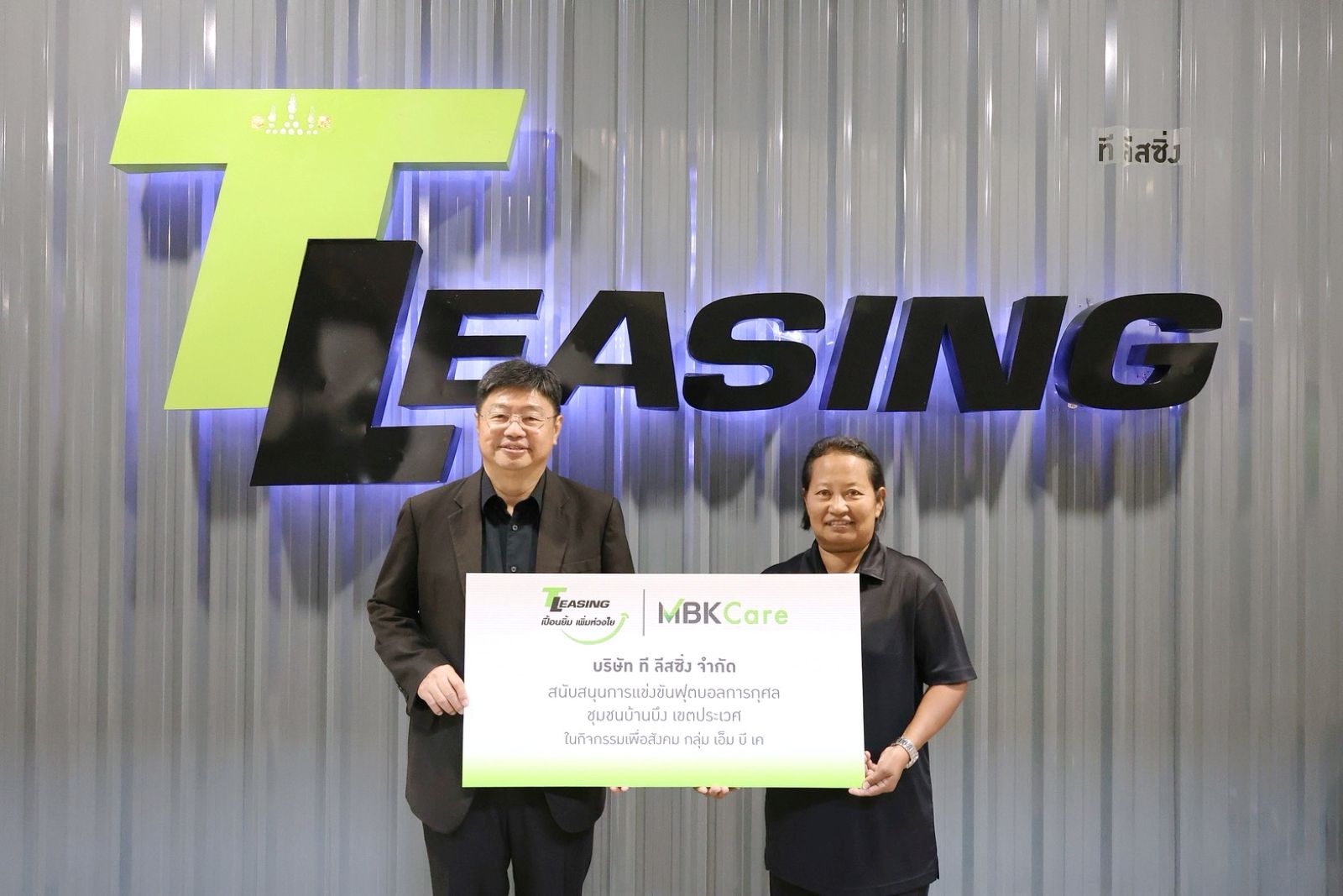 นายมงคล เพียรพิทักษ์กิจ กรรมการผู้จัดการ (ซ้าย) บริษัท ที ลีสซิ่ง จำกัด ผู้ให้บริการสินเชื่อเช่าซื้อรถจักรยานยนต์ ในเครือ เอ็ม บี เค มอบทุนสนับสนุนการแข่งขันฟุตบอลให้กับตัวแทนชุมชนบ้านบึง เขตประเวศ กรุงเทพมหานคร เพื่อใช้ในการแข่งขันฟุตบอลชุมชนบ้านบึง ประจำปี 2568 โครงการ “ที ลีสซิ่ง เปื้อนยิ้ม เพิ่มห่วงใย” ที่ให้การสนับสนุนอย่างต่อเนื่อง เพื่อส่งเสริมให้เยาวชนใช้เวลาว่างให้เกิดประโยชน์ สร้างเสริมสุขภาพกายและใจที่แข็งแรง พร้อมปลูกฝังวินัย การทำงานเป็นทีม และน้ำใจนักกีฬาพื้นฐานสำคัญในการพัฒนาตนเองสู่ความสำเร็จ ณ สำนักงานใหญ่ บริษัท ที ลีสซิ่ง จำกัด อาคารพาราไดซ์ เพลส ชั้น 3 เมื่อเร็วๆ นี้