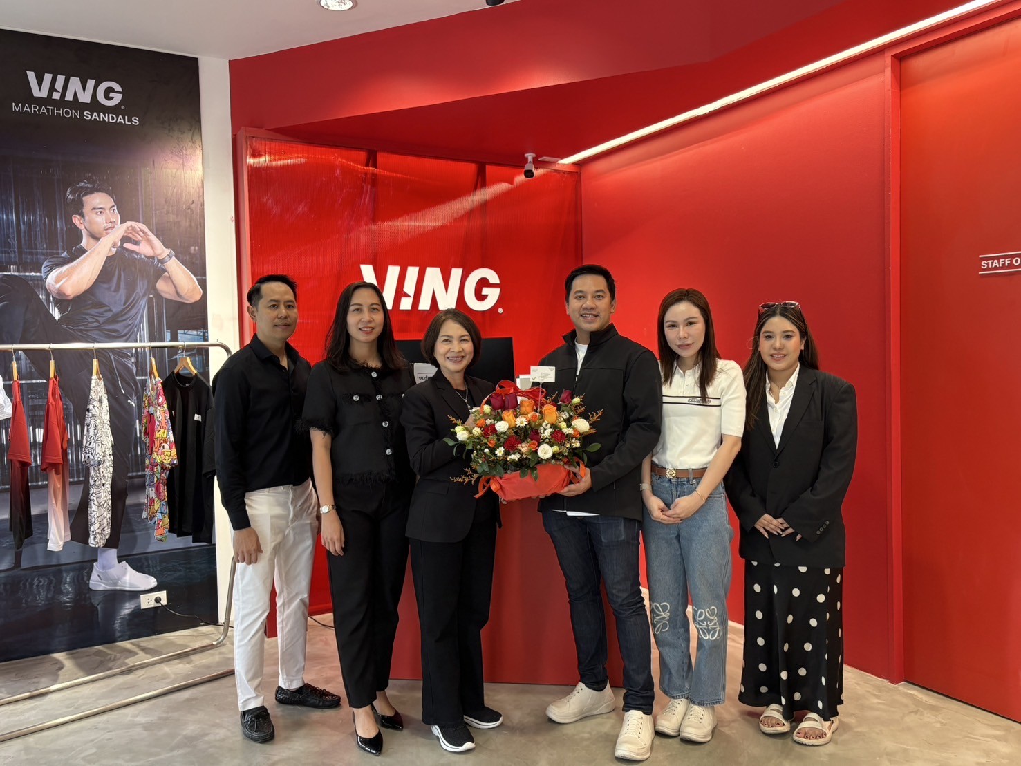 นางสาวจรูญรัตน์ สาลี กรรมการผู้จัดการ บริษัท พาราไดซ์ พาร์ค จำกัด (ที่ 3 จากซ้าย) ร่วมแสดงความยินดีแก่นายวาที วิเชียรนิตย์ CEO (ที่ 4 จากซ้าย) และ นางสาวจิติมา ยิ่งชนะเกียรติ กรรมการบริหาร บริษัท วีอิ้ง อินเตอร์เทรด จำกัด (ที่ 5 จากซ้าย) ในโอกาสเปิด VING OUTLET STORเปิดสาขาใหม่ พบกับรองเท้าแตะวิ่งมาราธอนเพื่อสุขภาพ หลากหลายรุ่น สำหรับคนรักการวิ่ง และผู้ที่ดูแลสุขภาพ และได้เลือกช้อปได้แล้ววันนี้ ณ Paradise Side Walk ศูนย์การค้าพาราไดซ์ พาร์ค เมื่อเร็ว ๆ นี้