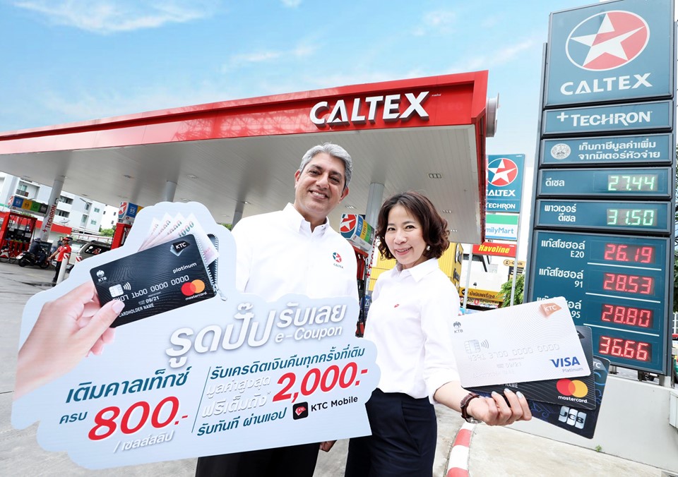 นางพิทยา วรปัญญาสกุล รองประธานเจ้าหน้าที่บริหาร - ธุรกิจบัตรเครดิต "เคทีซี" หรือบริษัท บัตรกรุงไทย จำกัด (มหาชน)ร่วมกับ นายซาลมาน ซาดัต ประธานกรรมการและผู้จัดการใหญ่ บริษัท เชฟรอน (ไทย) จำกัด ผู้ให้บริการสถานีบริการน้ำมันคุณภาพระดับโลกภายใต้แบรนด์ “คาลเท็กซ์” จัดโปรโมชั่นสุดคุ้ม มอบสิทธิพิเศษให้สมาชิกบัตรเครดิตเคทีซีที่เติมน้ำมัน ณ สถานีบริการน้ำมันคาลเท็กซ์ที่ร่วมรายการทั่วประเทศ ครบ 800 บาทต่อเซลล์สลิป และชำระด้วยบัตรเครดิตเคทีซี รับทันที e-Coupon เครดิตเงินคืนมูลค่าสูงสุด 2,000 บาท ผ่านแอปพลิเคชัน “KTC Mobile”โดยไม่ต้องลงทะเบียนและไม่จำกัดจำนวนสิทธิ์ ตั้งแต่วันที่ 1 มิถุนายน 2562 - 31 สิงหาคม 2562