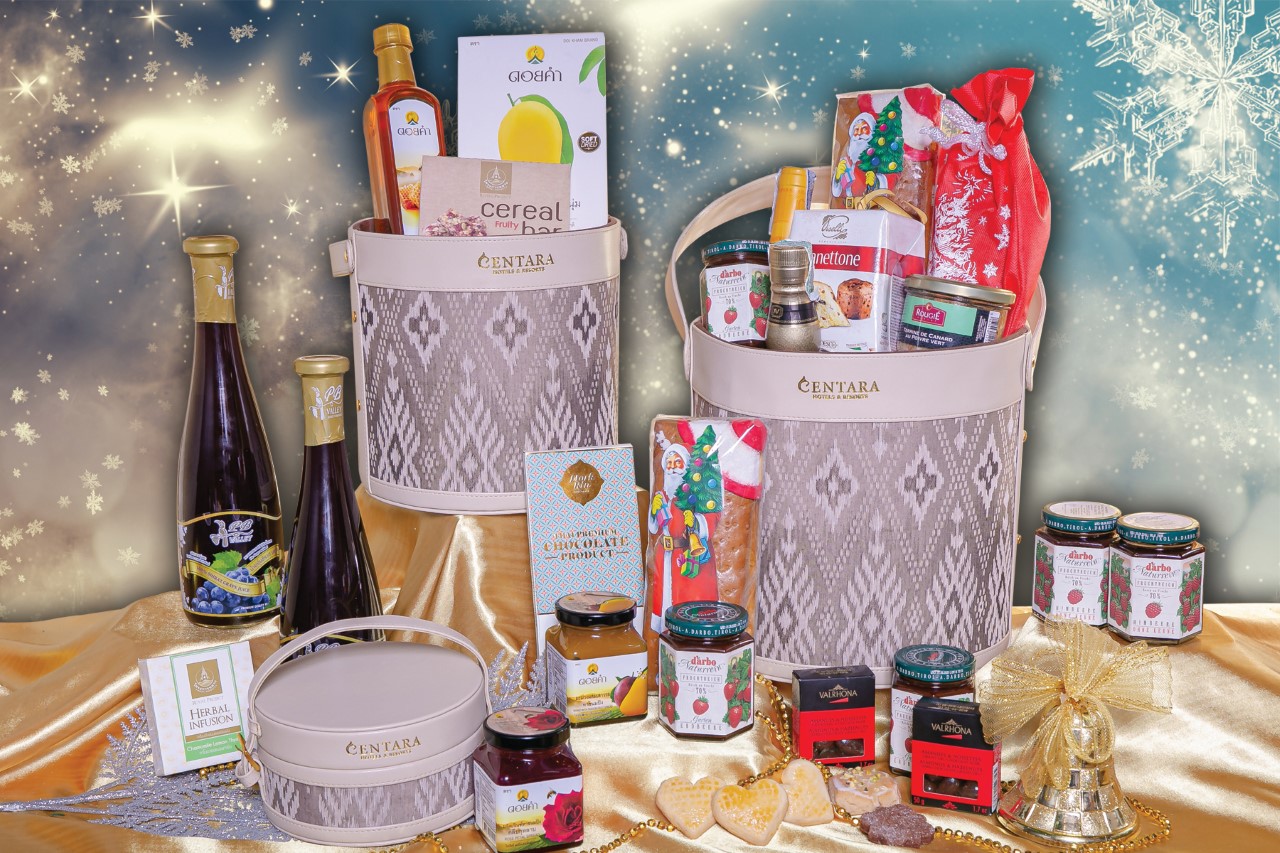 ในเทศกาลแห่งความสุขส่งท้ายปีนี้ ซิงก์ เบเกอรี่ โรงแรมเซ็นทาราแกรนด์และบางกอกคอนเวนชันเซ็นเตอร์ เซ็นทรัลเวิลด์ ขอเสนอ กระเช้าของขวัญหลากหลายรูปแบบ เพื่อตอบโจทย์ทุกไลฟ์สไตล์ของลูกค้า ที่มาพร้อมกับสินค้าระดับพรีเมี่ยม ไม่ว่าจะเป็น ไวน์,สปาร์คกลิ้งไวน์ และวิสกี้ชั้นดี, แยมผลไม้, แยมเบอร์รี, คริสต์มาสสโตเลน (Christmas Stollen) หรือ ช็อกโกแลต, ขนมขิงสูตรต้นตำรับ (Gingerbread), ขนมปาเน็ตโทน (Panettone Mignon), และตับห่านบด เป็นต้น มีให้เลือกถึง 3 แบบ สำหรับขนาดเล็ก “ไทย เฟสทีฟ เซอร์ไพรส์” (Thai Festive - Surprise) ราคา 2,500++ บาท, สำหรับขนาดกลาง “ยูโรเปี้ยน คริสต์มาส เทรเชอร์” (European Christmas - Treasure) ราคา 4,000++ บาท และสำหรับขนาดใหญ่ “ยูโรเปี้ยน คริสต์มาส เมจิก” (European Christmas - Magic) ราคา 6,200++ บาท (ราคานี้ไม่รวมอัตราภาษีและค่าบริการ) เพื่อเป็นตัวแทนคำขอบคุณ และคำบอกรักให้กับคนที่คุณรักและปรารถนาดี สำหรับเพื่อนสนิท ครอบครัว และลูกค้าคนสำคัญของคุณตลอดช่วงเทศกาลแห่งความสุขนี้