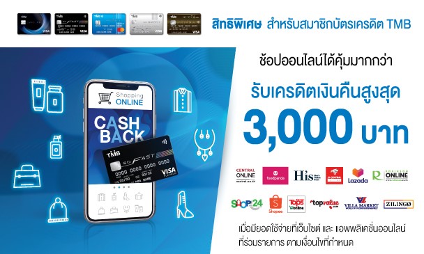 บัตรเครดิต TMB ให้คุณช้อปออนไลน์ได้คุ้มมากกว่า พร้อมรับเครดิตเงินคืนสูงสุด 3,000 บาท