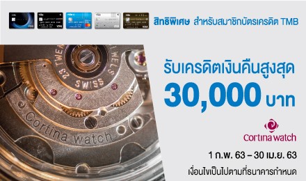 บัตรเครดิตทีเอ็มบี ให้ผู้ชื่นชอบนาฬิกาที่ใช้จ่ายที่ Cortina Watch รับเครดิตเงินคืนสูงสุด 30,000 บาท