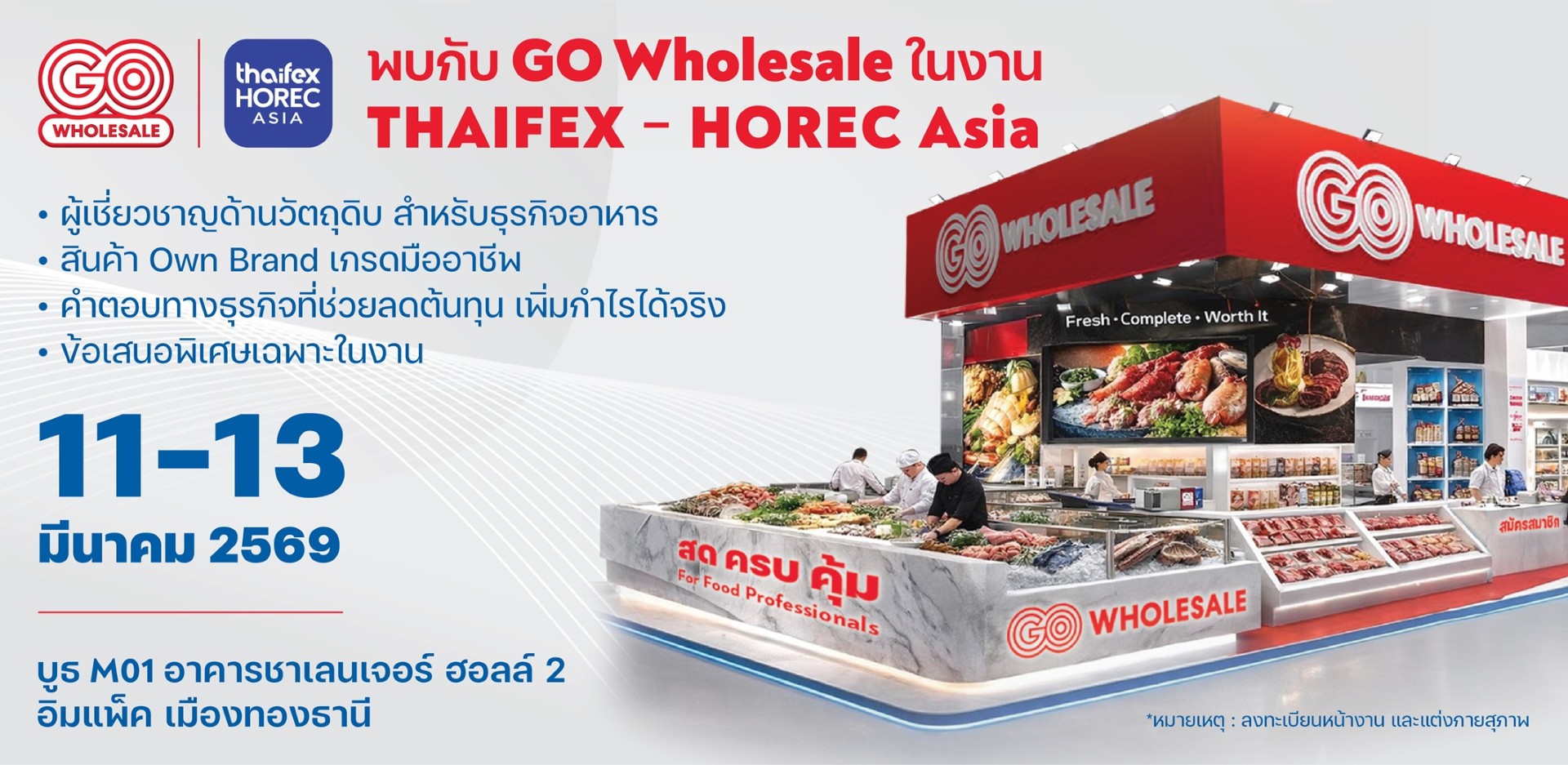 โก โฮลเซลล์ (GO WHOLESALE) ศูนย์ค้าส่งวัตถุดิบอาหาร ที่มีความสดใหม่ตลอดเวลาเพื่อผู้ประกอบการ ภายใต้การดำเนินงานของ บริษัท เซ็นทรัล ฟู้ด โฮลเซลล์ จำกัด ในเครือเซ็นทรัล รีเทล ร่วมโชว์ศักยภาพการเป็นแหล่งรวมวัตถุดิบอาหารชั้นนำ ในงาน THAFEX-HOREC ASIA 2026 งานนี้หัวเรือใหญ่ ‘ริคาร์โด้ เบารอตโต้ CEO’ และ ‘ซันนี่ ซิดิค รองประธานเจ้าหน้าที่บริหาร สายงานบริหารสินค้าธุรกิจค้าส่ง’ จัดเต็มแบบไม่กั๊ก ยกตู้อควาเรียมชูการบริหารจัดการปลา อาหารทะเลเป็น มุมเนื้อคุณภาพจาก Butcher มือรางวัล อาหารแช่แข็งหลากหลายชนิดทั้ง ผัก ผลไม้ ชีส รวมถึงสินค้า Own Brand ที่สร้างสรรค์เพื่อผู้ประกอบการโดยเฉพาะ เติมเต็มฟู้ดอีโคซิสเต็มกับ แอปฯ GO WHOLESALE พร้อมลิ้มรสชาติอาหารจากเชฟดัง เชฟมืออาชีพจากเซ็นทารา โดยมีผู้เชี่ยวชาญ คอยตอบคำถาม เจรจาธุรกิจ มีข้อเสนอพิเศษ ตลอดงาน วันที่ 11-13 มีนาคม 2569 เวลา 10.00 – 18.00 น. พบกันที่ บูธ M01 อาคารชาเลนเจอร์ ฮอลล์ 2 อิมแพ็ค เมืองทองธานี