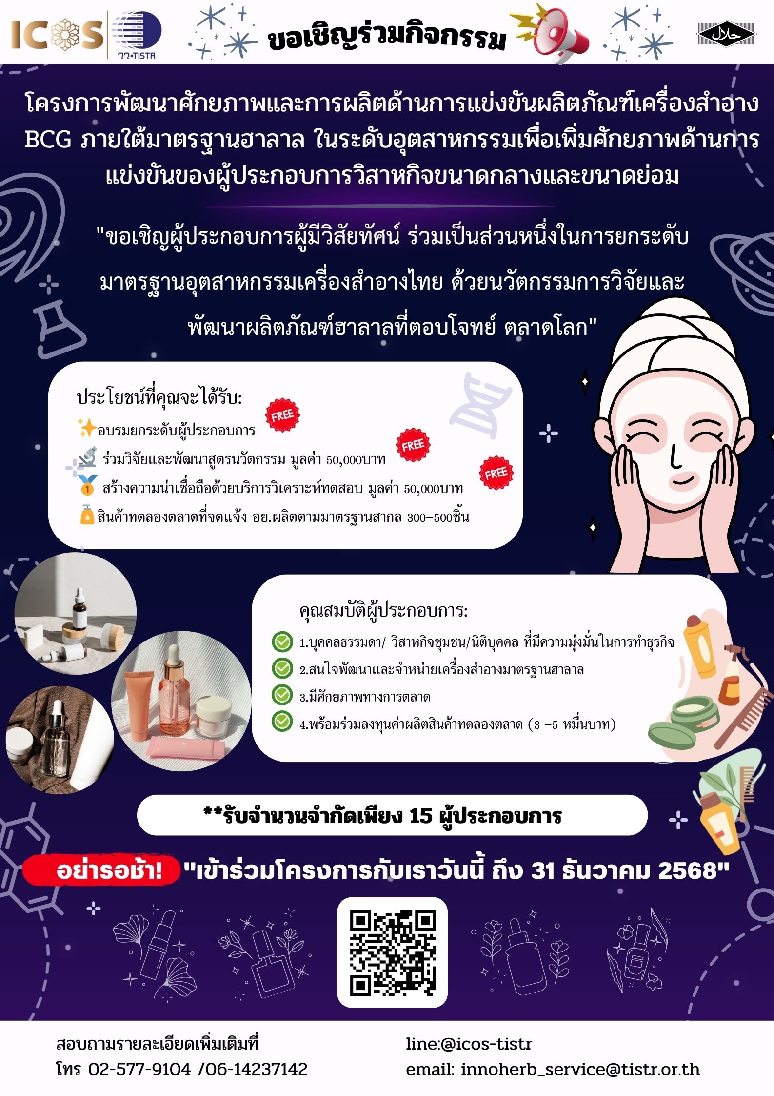 วว. เชิญชวนผู้ประกอบการร่วมเป็นส่วนหนึ่งในการยกระดับมาตรฐานอุตสาหกรรมเครื่องสำอางไทย ด้วยนวัตกรรมวิจัยพัฒนาผลิตภัณฑ์ฮาลาลที่ตอบโจทย์ตลาดโลก