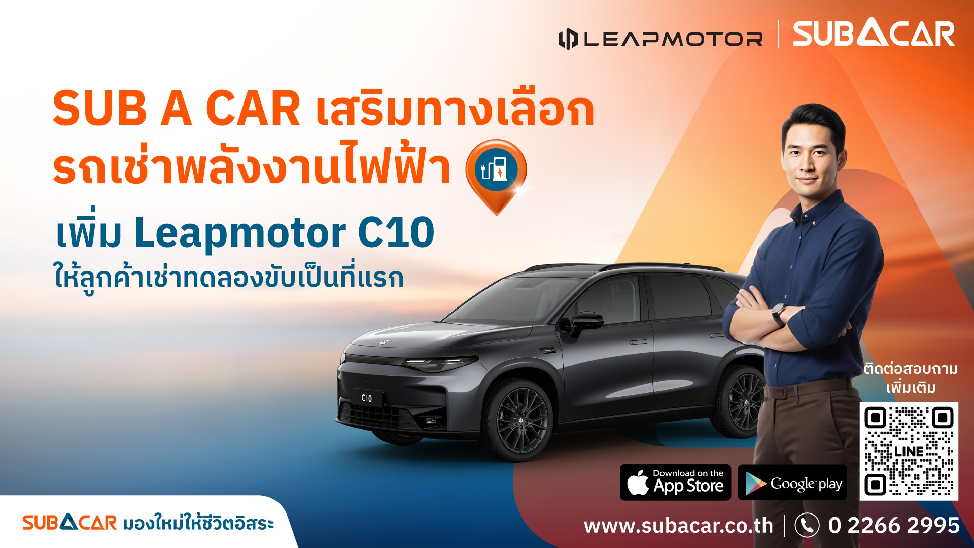 SUB A CAR เสริมทางเลือกรถเช่าพลังงานไฟฟ้า เพิ่ม Leapmotor C10 ให้ลูกค้าเช่าทดลองขับเป็นที่แรก