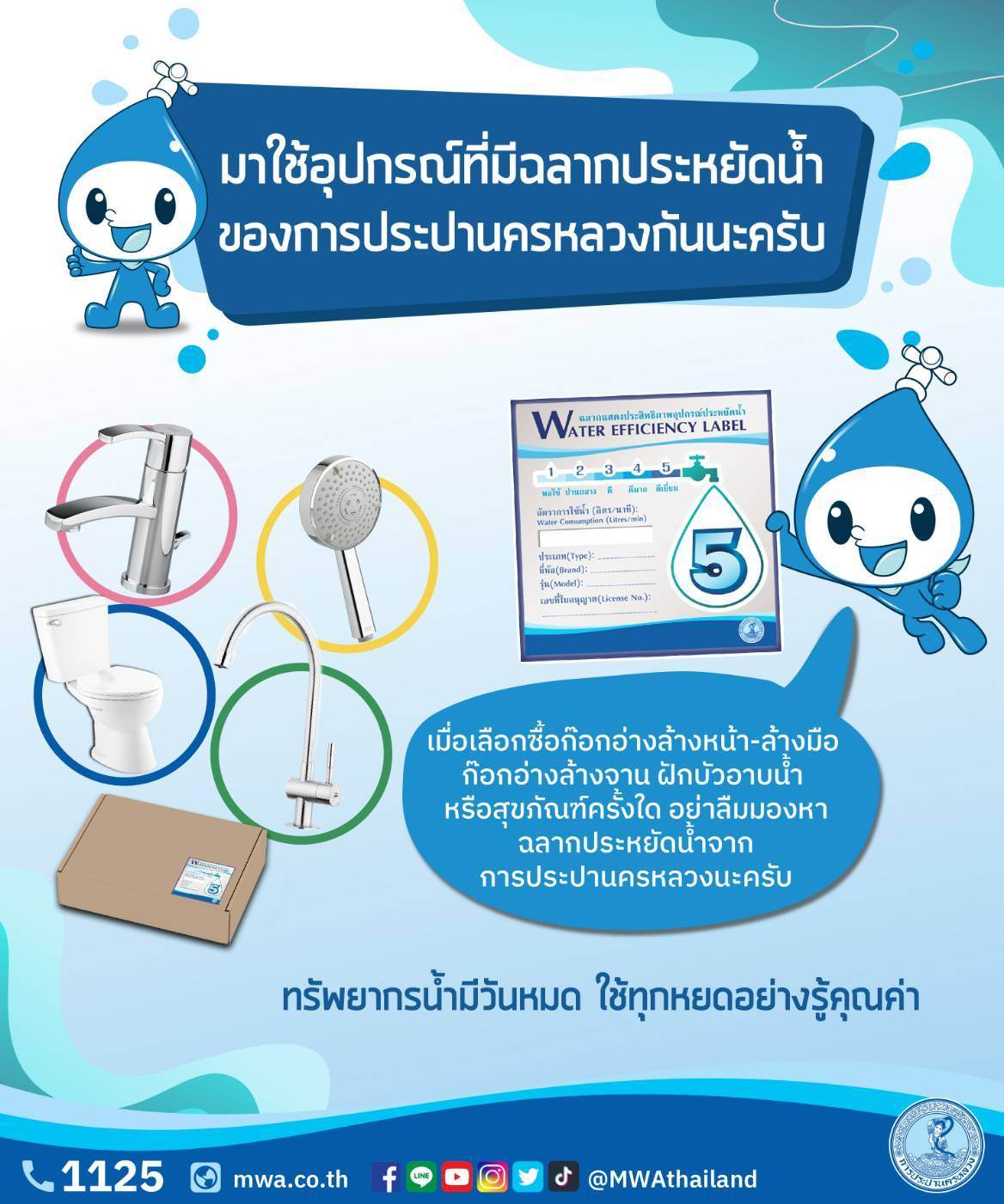 การประปานครหลวง (กปน.) ชวนประหยัดน้ำง่าย ๆ จากตัวเราเอง โดยการเลือกใช้อุปกรณ์ที่มีฉลากประหยัดน้ำของ กปน.