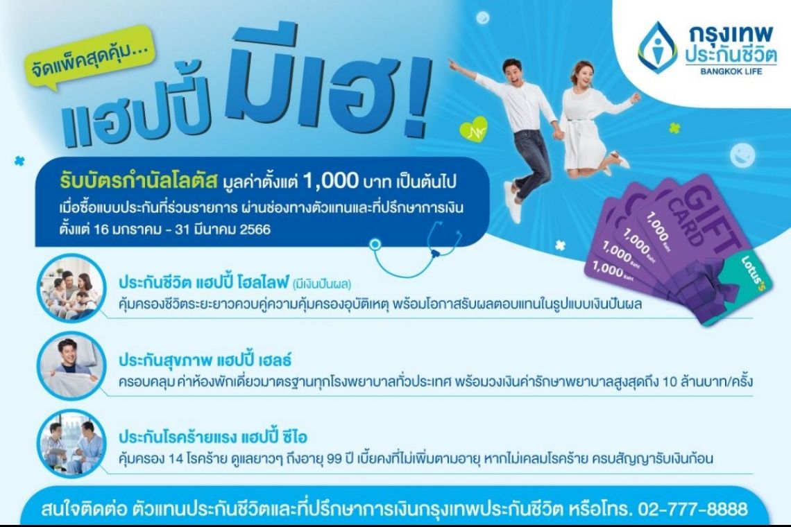 ‘กรุงเทพประกันชีวิต’ รุกตลาดสุขภาพ ส่งผลิตภัณฑ์คุ้มครองชีวิต-สุขภาพ-โรคร้ายแรงใหม่ พร้อมจัดโปรโมชั่นสุดพิเศษยกแพ็ค ‘แฮปปี้ มีเฮ!’