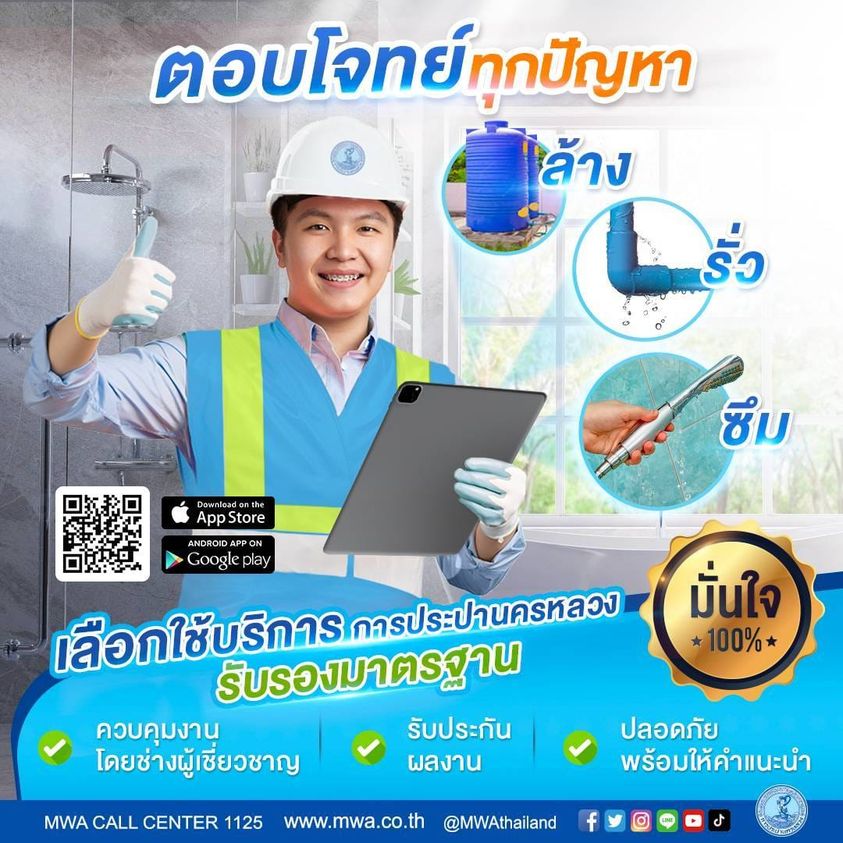 จองบริการล้างถังพักน้ำ สำรวจ-ซ่อมท่อประปาแตกรั่ว จากการประปานครหลวง ผ่านแอปฯ MWA onMobile ได้แล้ววันนี้