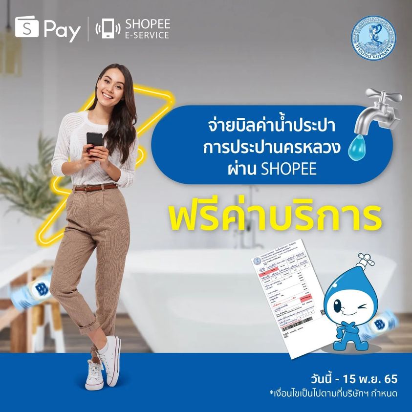 กปน. จับมือ ShopeePay ยกเว้นค่าบริการจ่ายบิลค่าน้ำประปา เมื่อชำระเงินผ่าน แอปฯ Shopee ตั้งแต่บัดนี้ - 15 พ.ย. 65 นี้