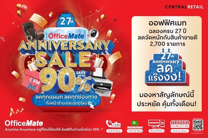 ออฟฟิศเมท ฉลองครบรอบ 27 ปี SME มีเฮ! ลดสูงสุด 90%*