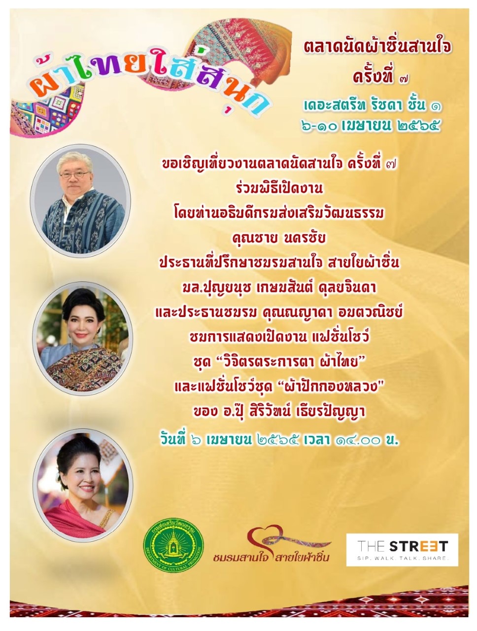ชมรมสานใจ สายใยผ้าซิ่น ร่วมกับกรมส่งเสริมวัฒนธรรม และเดอะสตรีท จัดงาน ตลาดนัดสานใจ ครั้งที่ 7