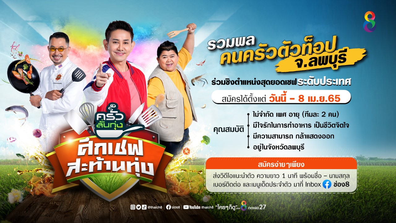 ตามหาคนชอบทำอาหาร เอ ไชยา เชิญชวนชาวลพบุรี ร่วมแข่งชิงเงินแสน ในรายการ ครัวลั่นทุ่ง “ศึกเชฟสะท้านทุ่ง”