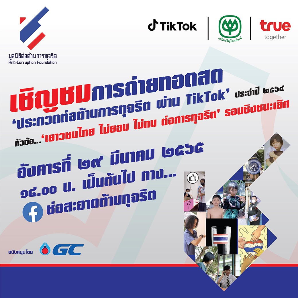 เชิญชมการประกวดรอบชิงชนะเลิศ การประกวด ‘ต่อต้านการทุจริต ผ่าน TikTok’