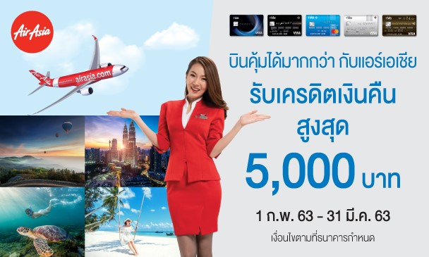 บัตรเครดิต TMB ชวนคุณมาบินคุ้มได้มากกว่ากับแอร์เอเชีย รับเครดิตเงินคืนสูงสุด 5,000 บาท