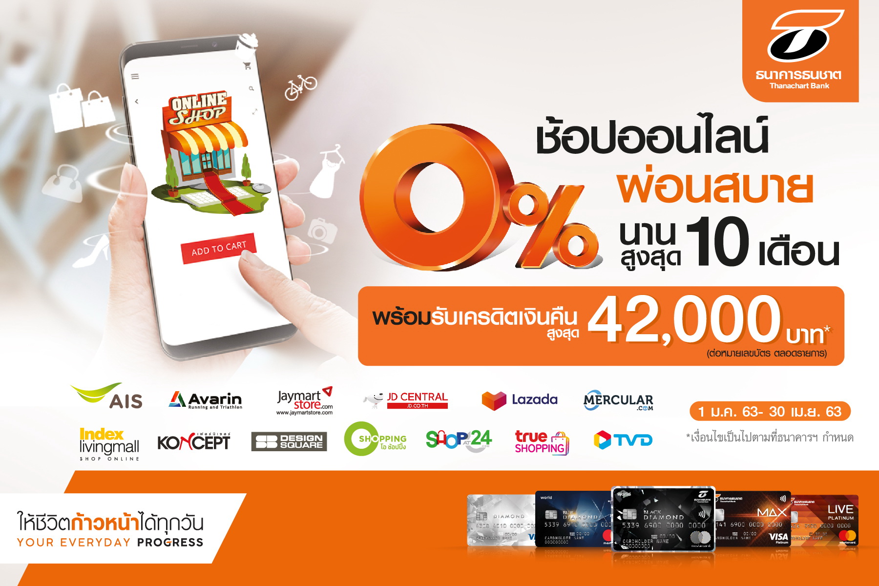 ธนชาต ให้ลูกค้าช้อปสินค้าออนไลน์ที่เว็บไซต์ดัง ผ่อนได้ 0% พร้อมรับเครดิตเงินคืน