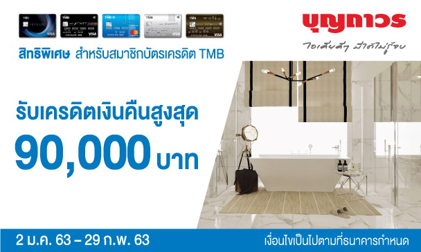 บัตรเครดิต TMB ร่วมกับ บุญถาวร ทุกสาขา มอบเครดิตเงินคืนสูงสุด 90,000 บาท
