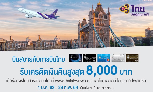 บัตรเครดิต TMB ร่วมกับ การบินไทย ให้คุณบินสบายพร้อมรับเครดิตเงินคืนสูงสุด 8,000 บาท
