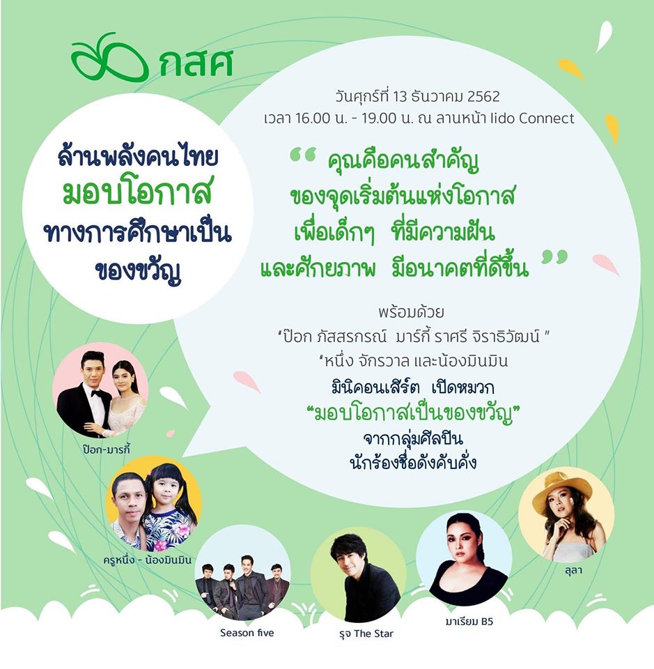 ป๊อก มาร์กี้ นำทีมศิลปินดารา ชวนร่วมงาน “ล้านพลังคนไทย มอบโอกาสทางการศึกษาเป็นของขวัญ” กับ กสศ.