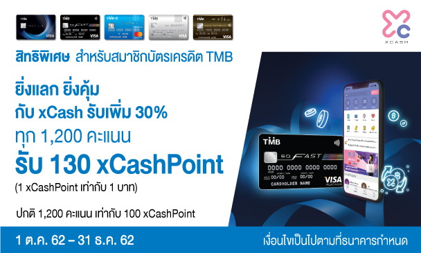 บัตรเครดิต TMB ชวนลูกค้าแลกแต้มแทนเงินสด กับโปรโมชั่น ยิ่งแลก ยิ่งคุ้ม กับ xCash มากกว่า 300 ร้านค้า