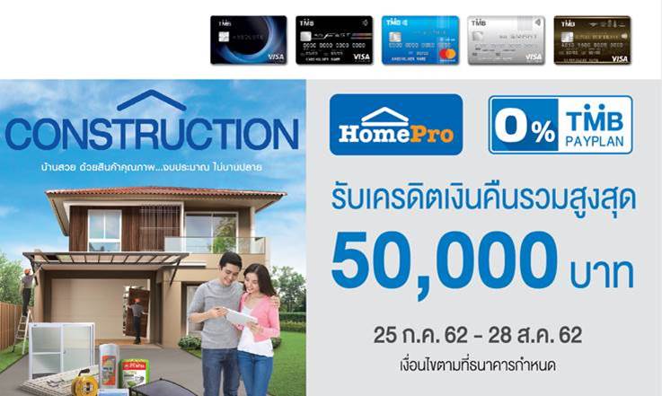 บัตรเครดิตทีเอ็มบีมอบสิทธิพิเศษให้คนรักบ้านได้มากกว่า ที่โฮมโปรทุกสาขา รับเครดิตเงินคืนรวมสูงสุด 50,000 บาท