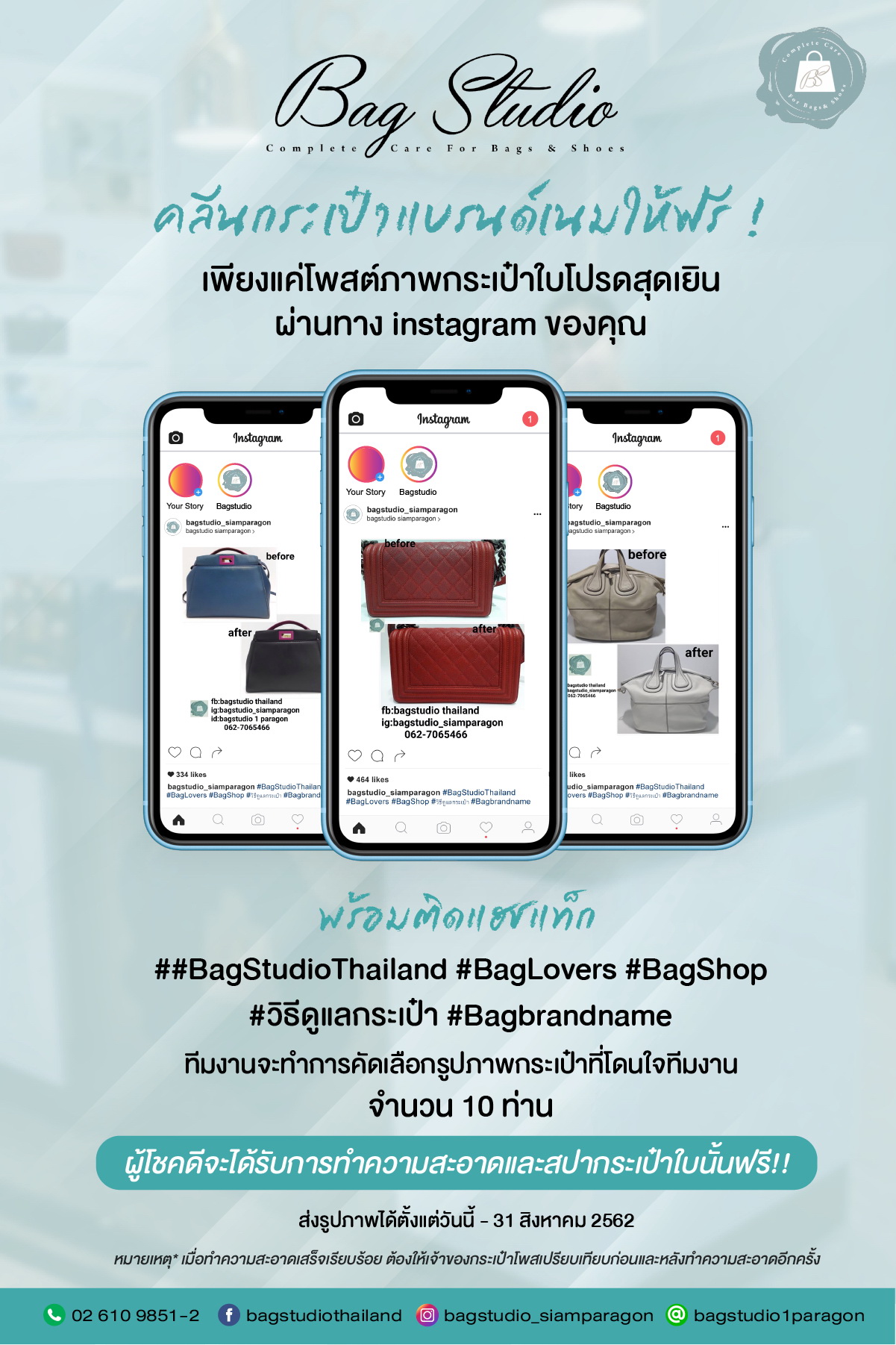 Bag Studio คลีนกระเป๋าแบรนด์เนมให้ฟรี เพียงแค่โพสต์ภาพกระเป๋าใบโปรดสุดเยินลงไอจี