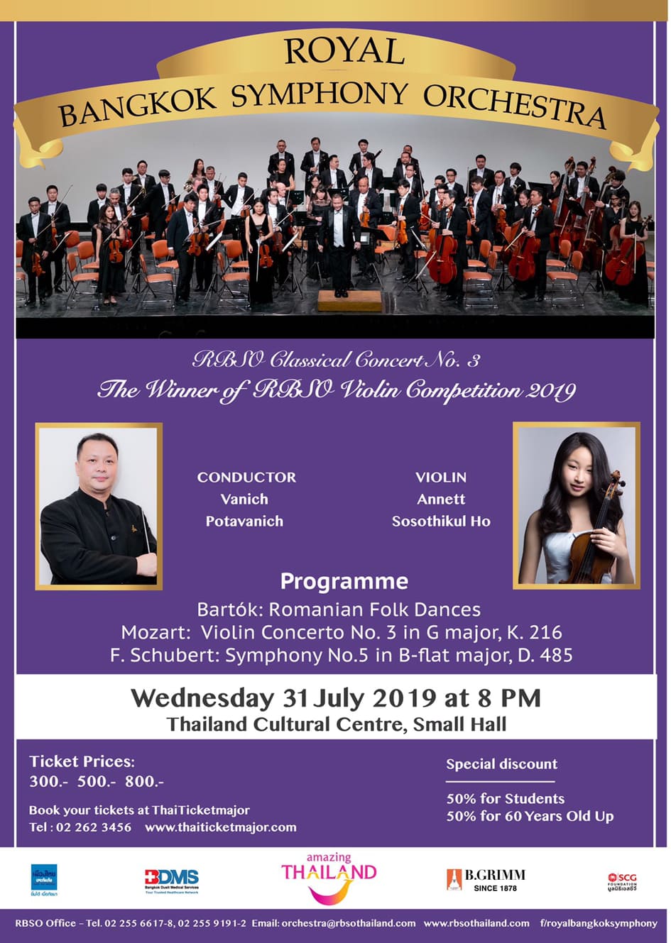 รอยัลแบงค์คอกซิมโฟนีออร์เคสตร้า ร่วมกับ การท่องเที่ยวแห่งประเทศไทยเชิญชมคอนเสิร์ต RBSO Classical Concert No 3